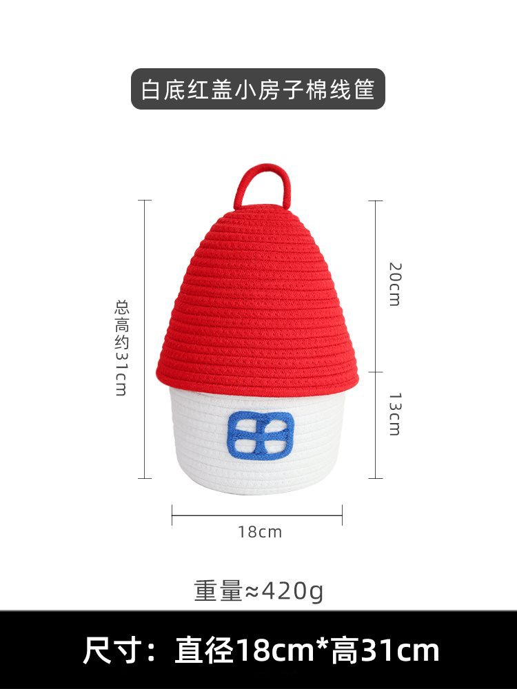 • 흰색 배경과 빨간색 덮개가 있는 작은 집 면 바구니