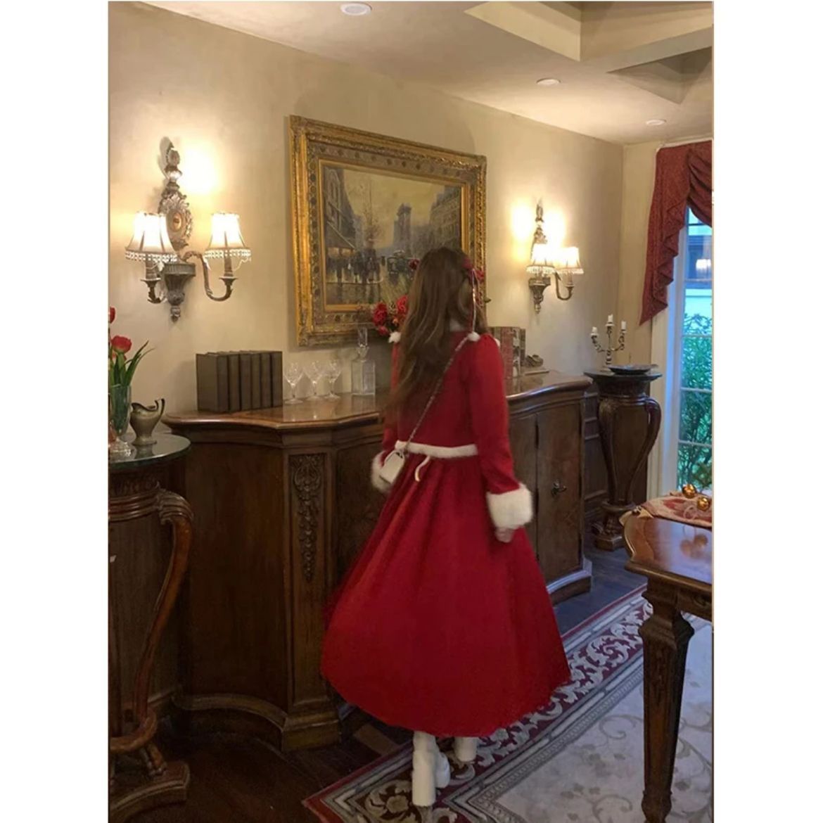 겨울 새해 크리스마스 전쟁 가운 두 조각 세트 새로운 중국 스타일 국가 스타일 세트 샤넬 스타일 코트 여성을위한 중간 길이 원피스 투피스 세트스토어 가기