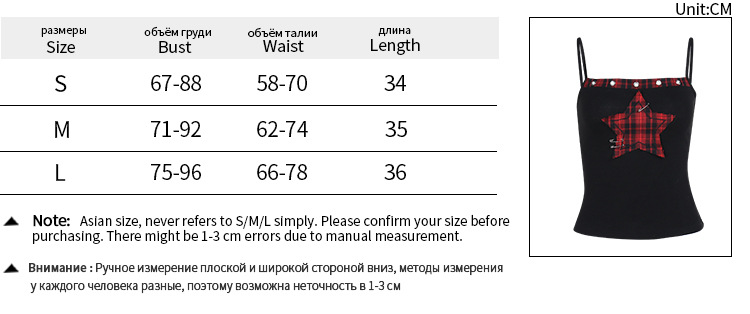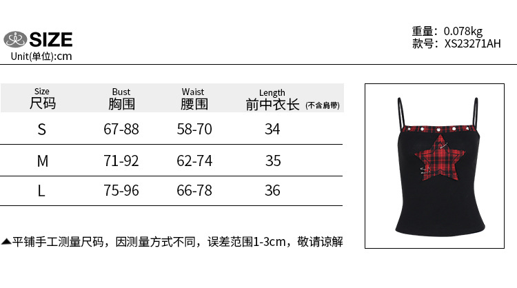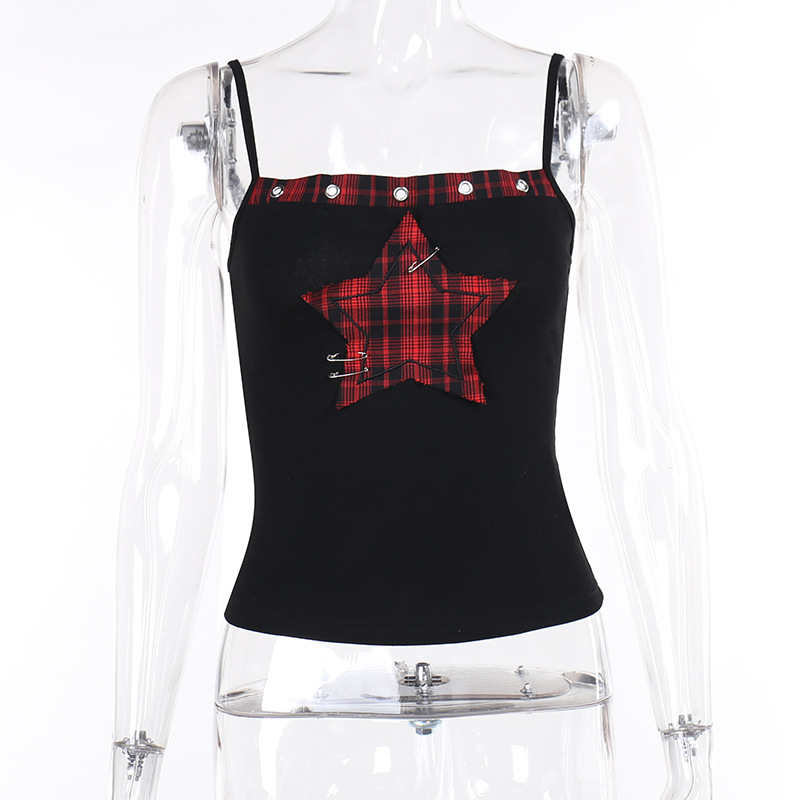 XS23271 다섯개 별 무늬 무늬 무늬 카미 솔 여성용 다크 펑크 스타일 유행 올매치 탑