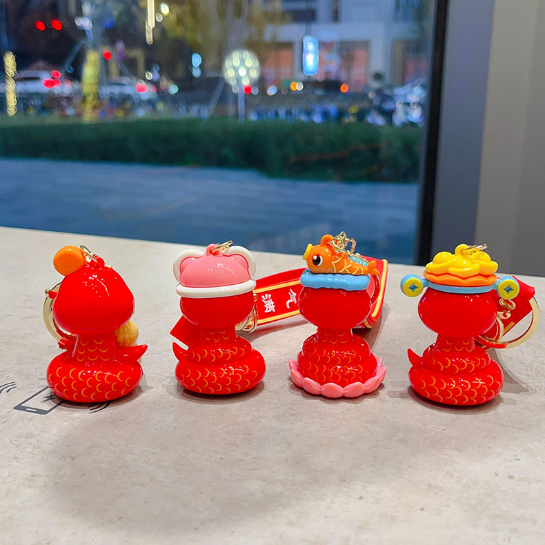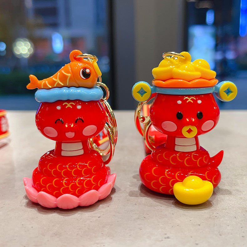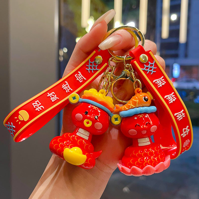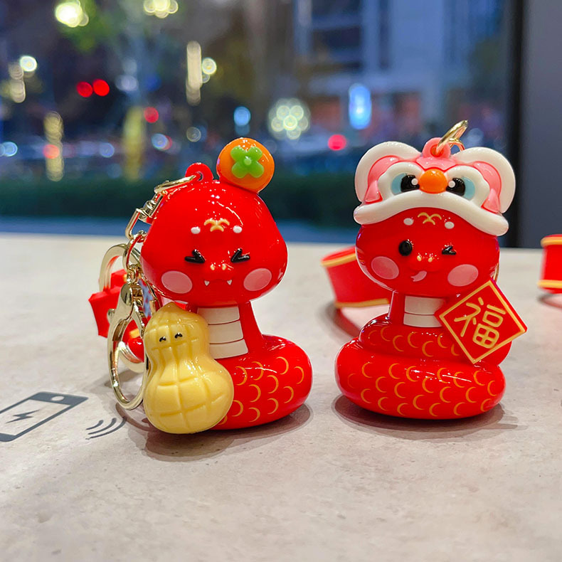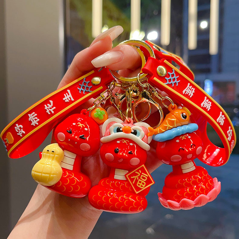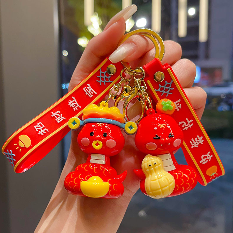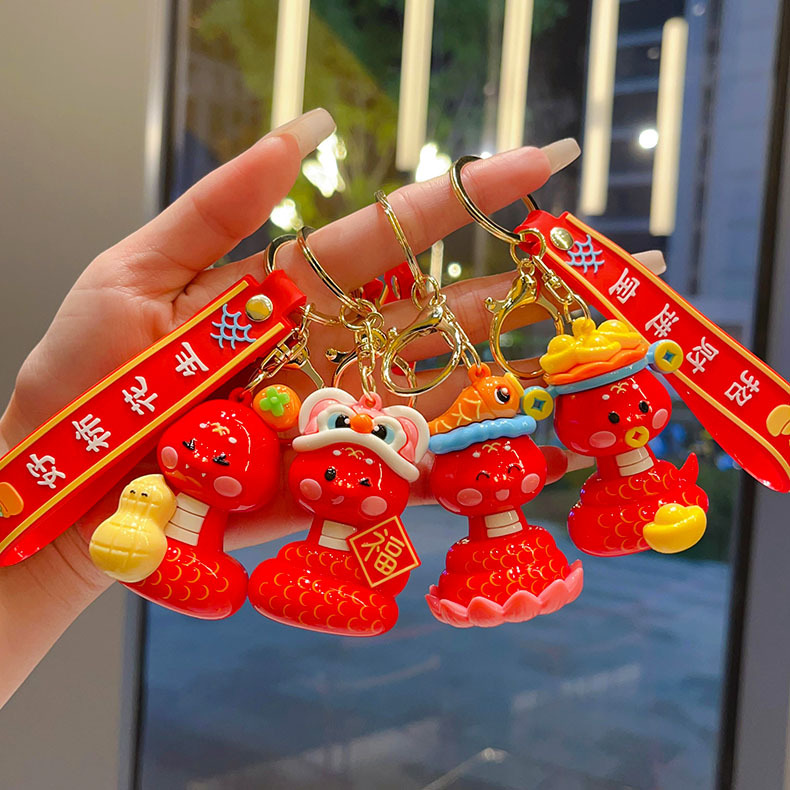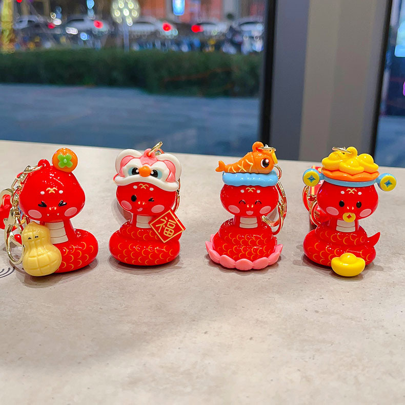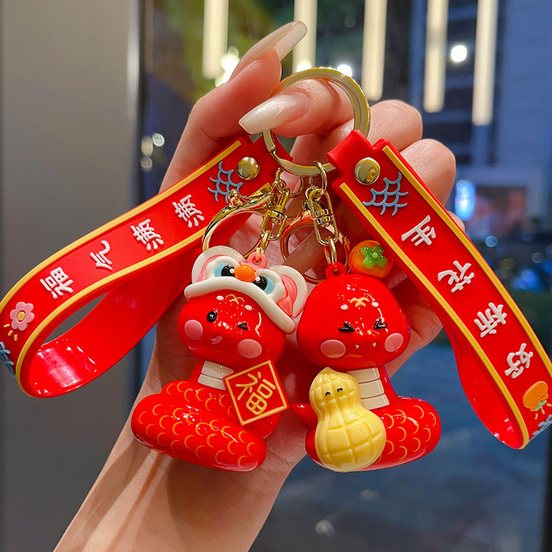 뱀 펜던트의 새 만화 년 전기 도금 키 체인 사자 댄스 부 국가 조수 아기 가방 매달려 장식품 새해 작은 선물