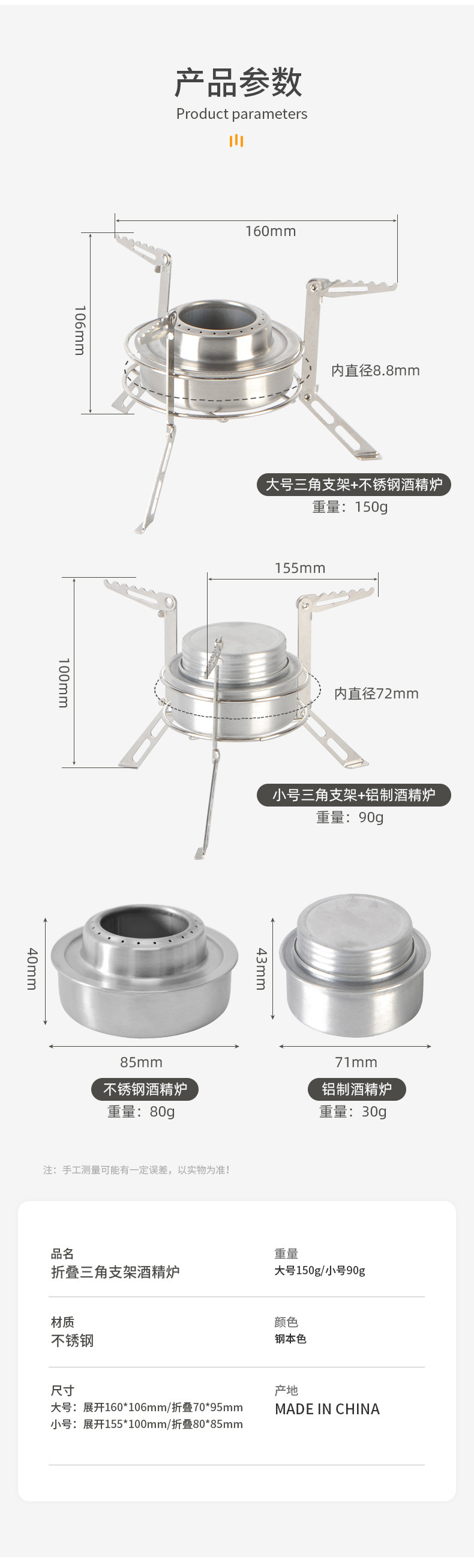 • 대형 삼각대 + 원형 스테인리스 스틸 알코올 스토브