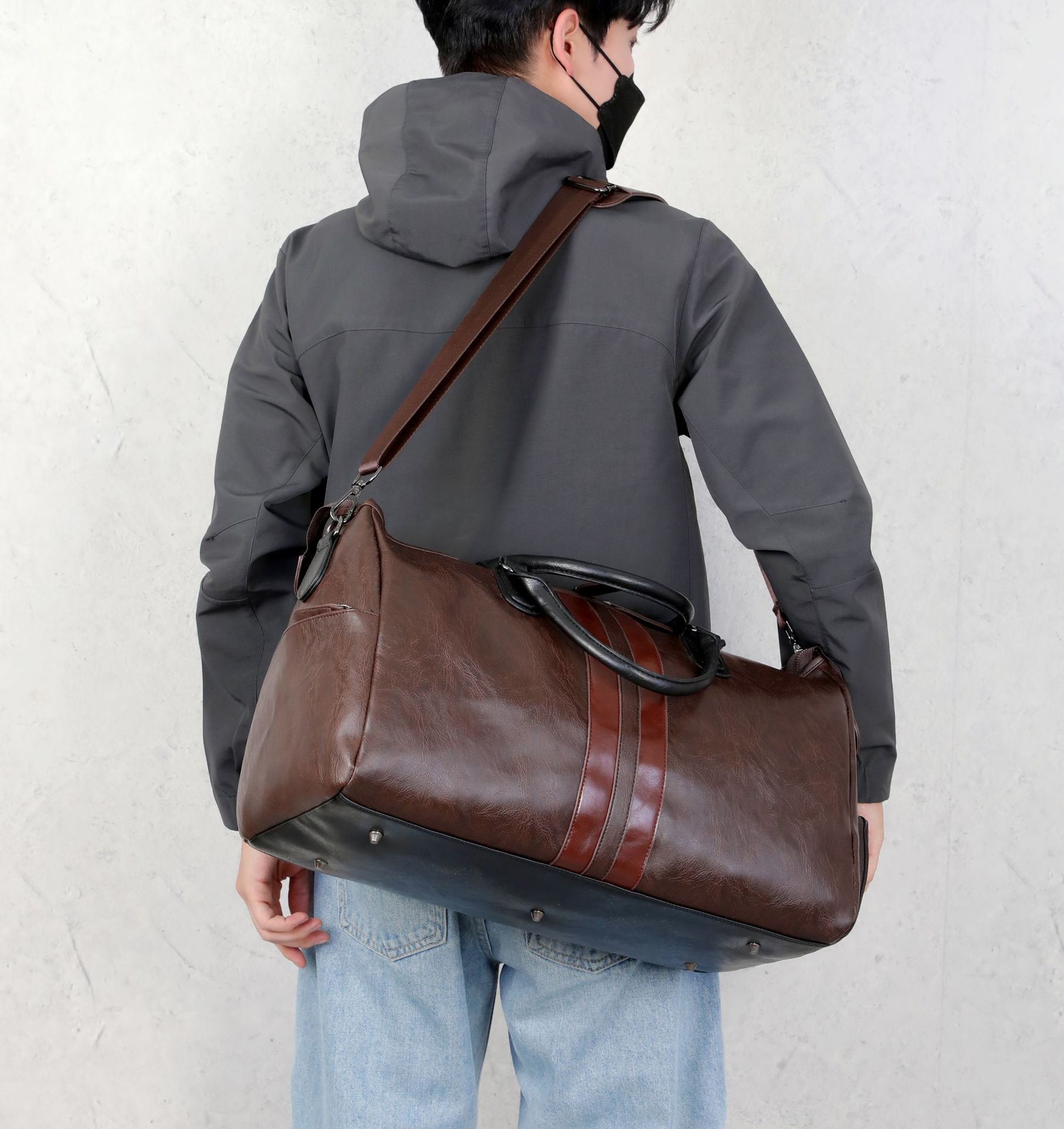 150 남자 슈퍼 대용량 여행 가방 신발 빈 수하물 가방 단거리 여행 가죽 어깨 가방 핸드백 크로스 백스토어 가기