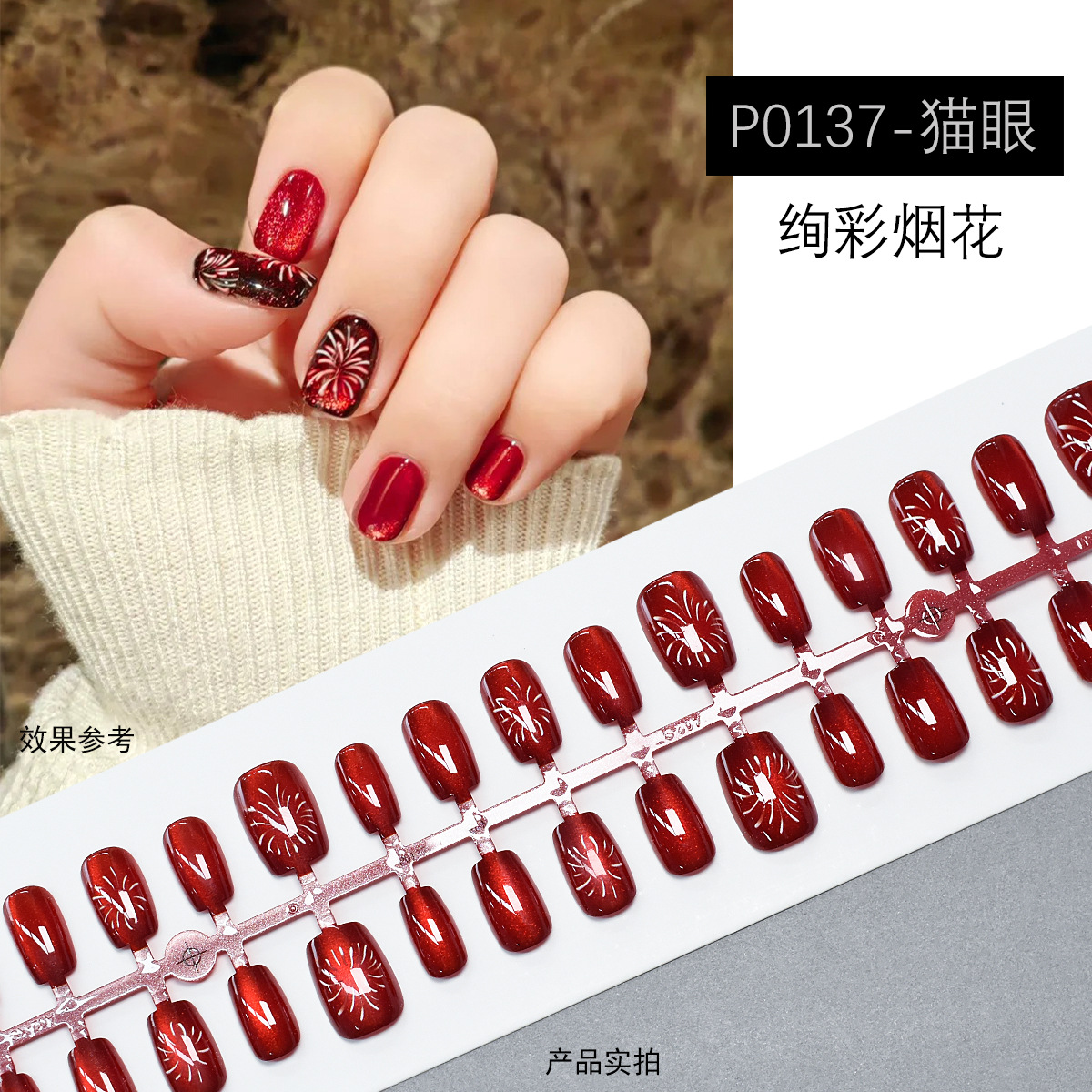 넷 레드 클래식 붉은 새해 갑옷 고양이 눈 화려한 불꽃 놀이 축제 새해 네일 아트 조각 팩스토어 가기