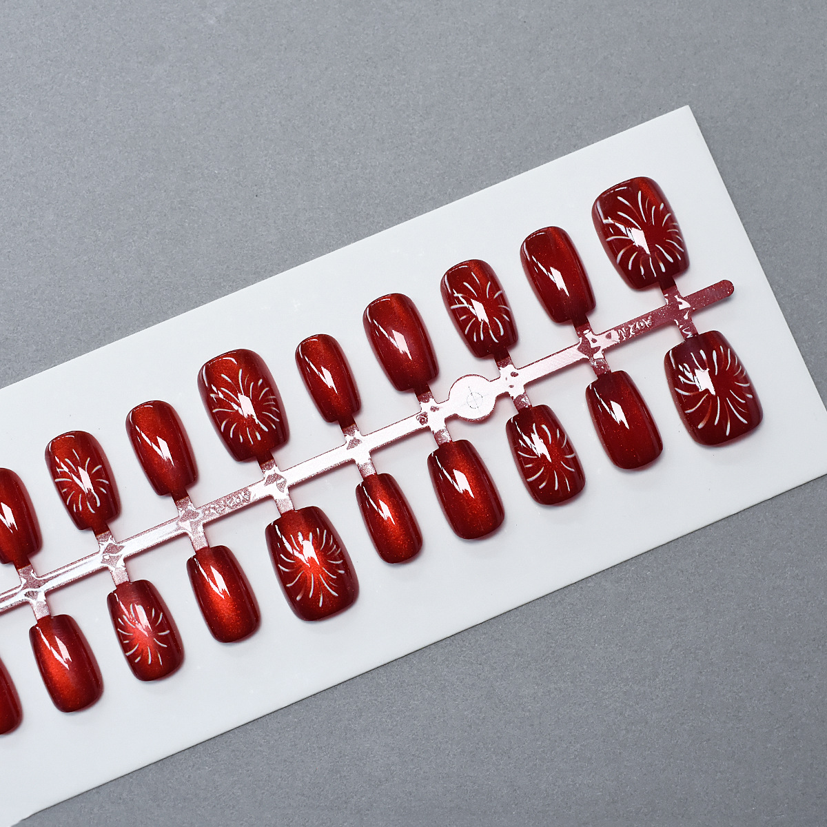 넷 레드 클래식 붉은 새해 갑옷 고양이 눈 화려한 불꽃 놀이 축제 새해 네일 아트 조각 팩