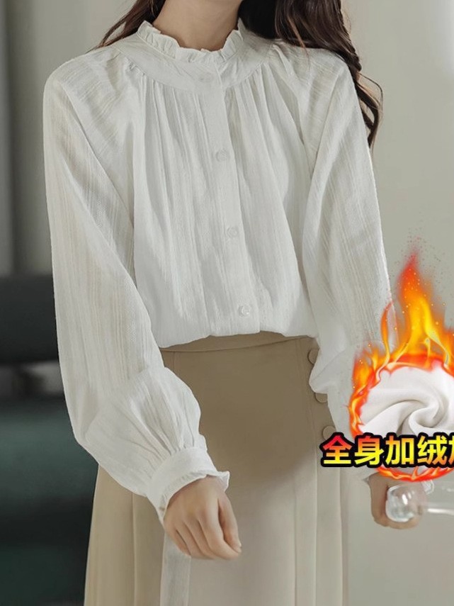 귀 트림 화이트 셔츠 여성 디자인 센스 니쉬 봄과 가을 새로운 긴 소매 스택 셔츠 루즈 스위트 베이스 탑스토어 가기