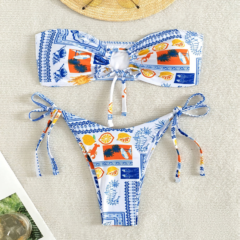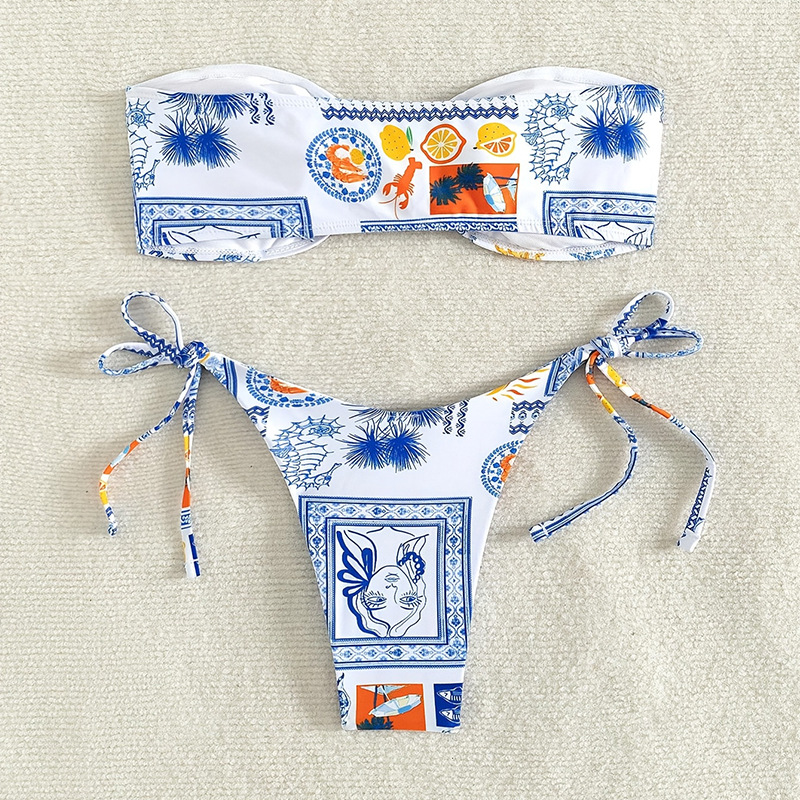 아마존 레이스 업 섹시한 비치 비키니 2024 새로운 유럽과 미국의 레이스 업 스플릿 수영복 여성 하이 엔드