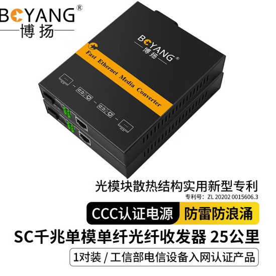 博扬(BOYANG)BY-NG613A/B 千兆单模单纤光纤收发器 光电转换器 防雷SC接口 25公里内置电源 一对价