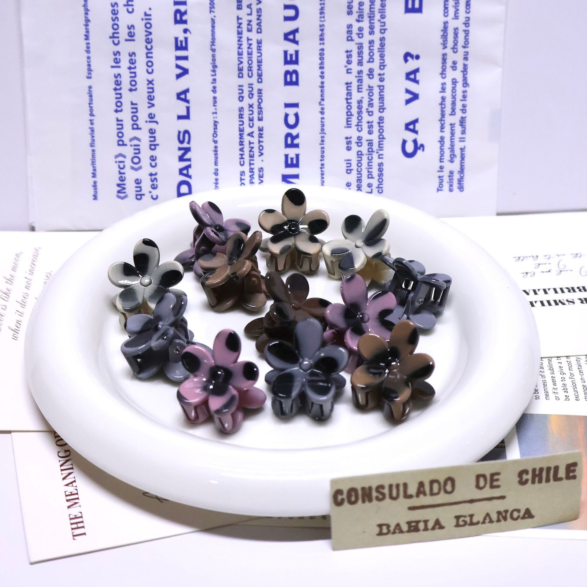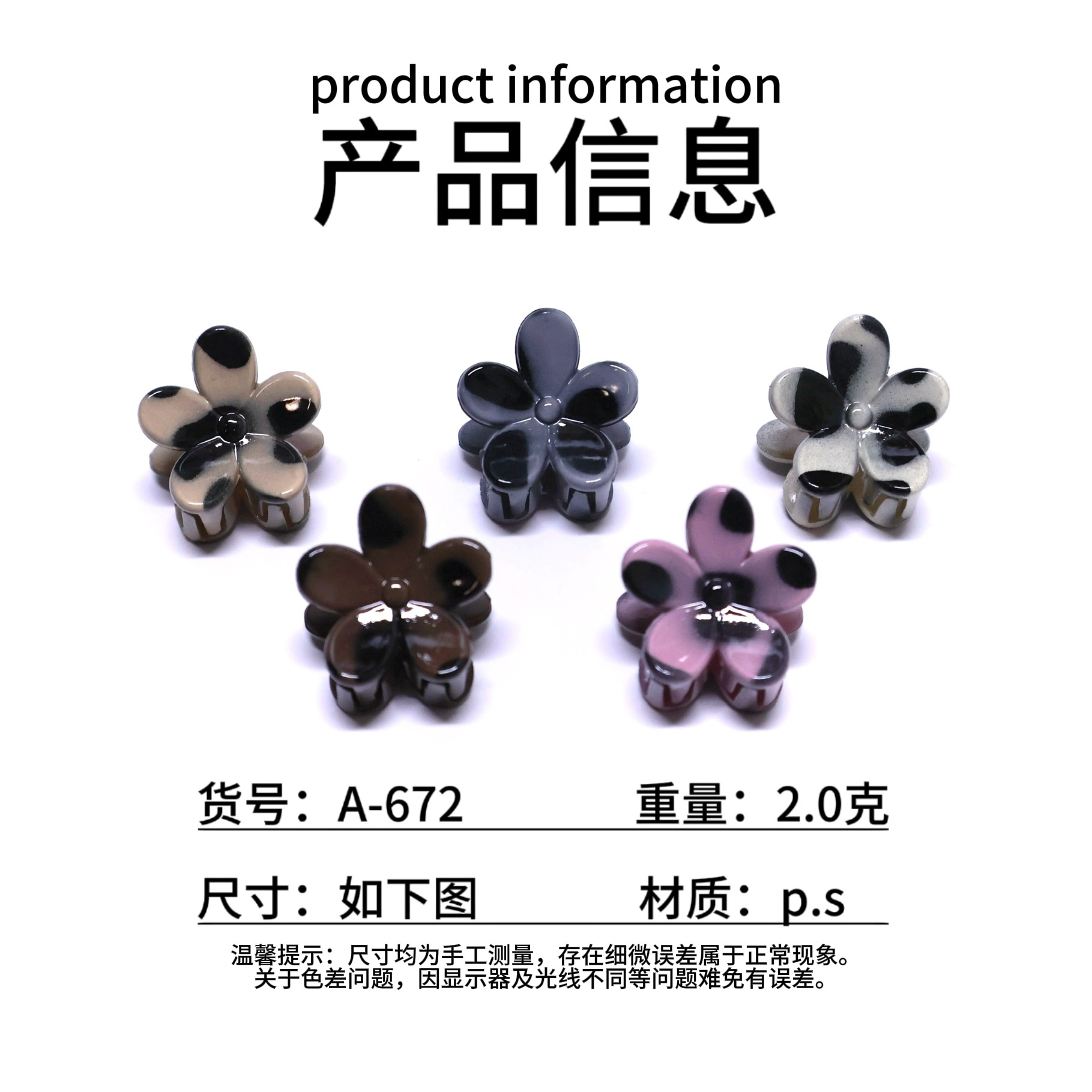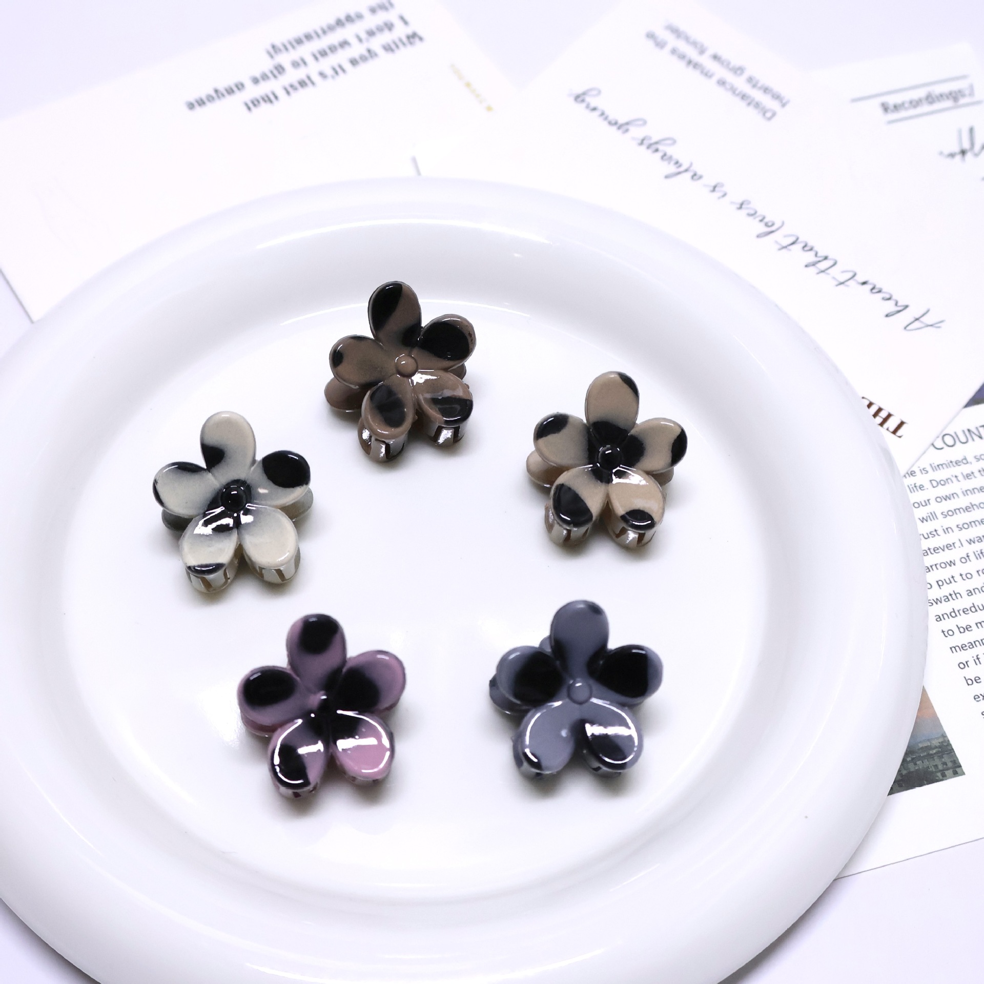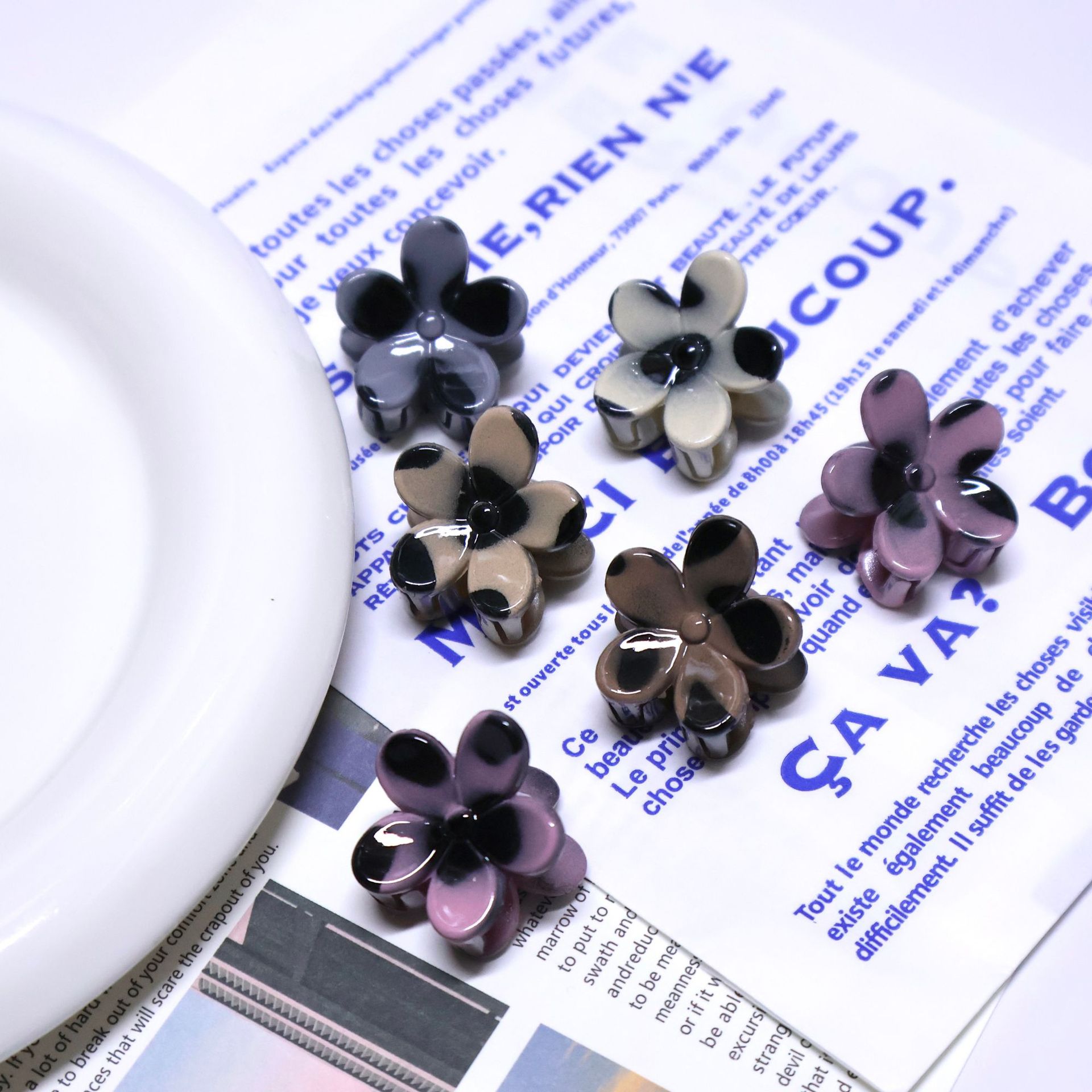국경을 넘는 호피무늬 꽃 모양 집게핀, 한국 스타일 미니 어린이 머리핀, 앞머리 옆머리 집게핀 액세서리 도매