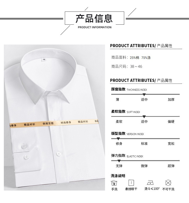 긴팔 및 반팔 남성용 비즈니스 셔츠, 전문 직장인 유니폼, 은행 부동산 화이트 셔츠, 통기성, 흡습성 및 땀 흡수성스토어 가기