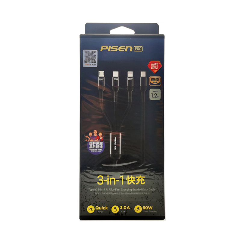 Pinsheng 3 대 1 데이터 케이블 PD60W 애플 화웨이 샤오미 휴대 전화 노트북 유니버설스토어 가기