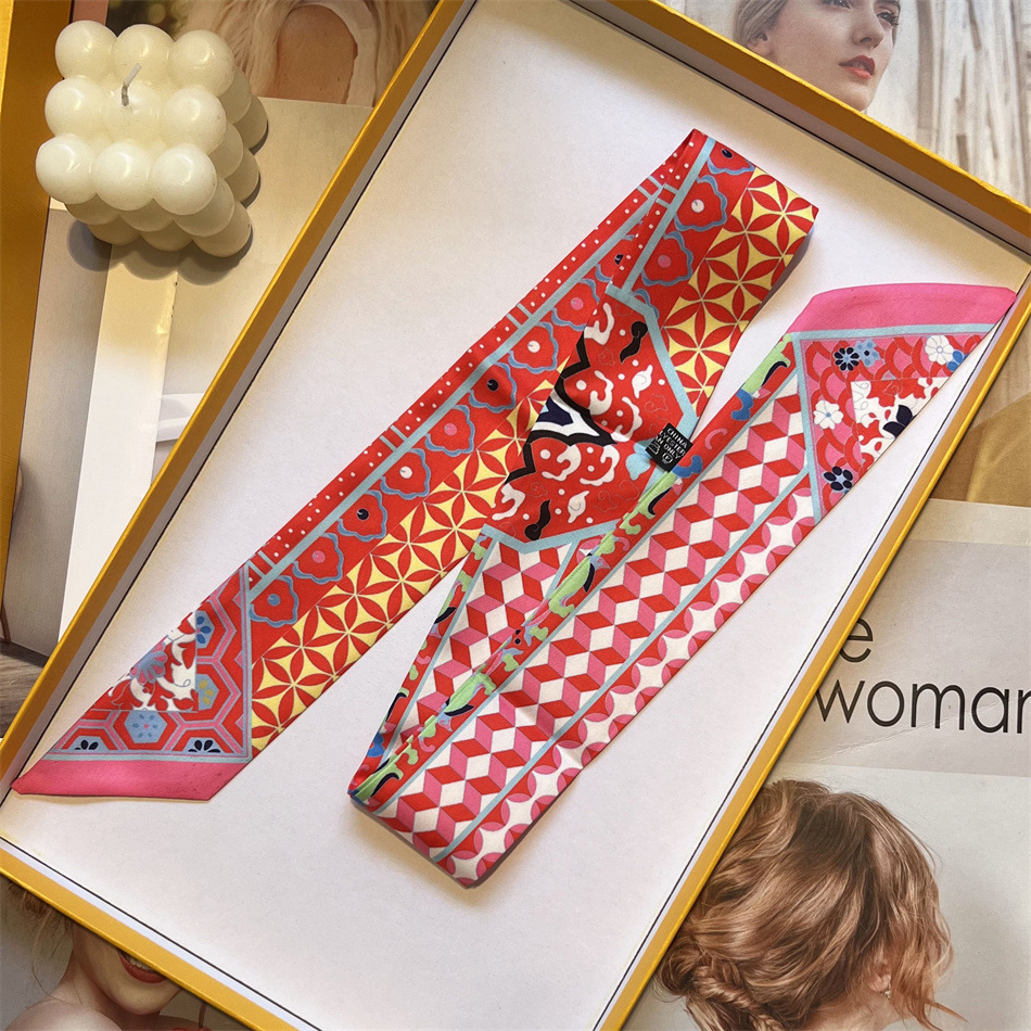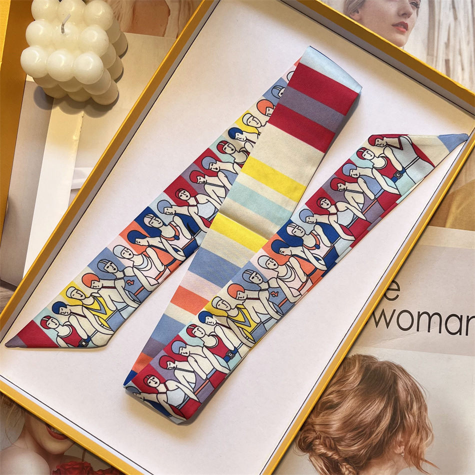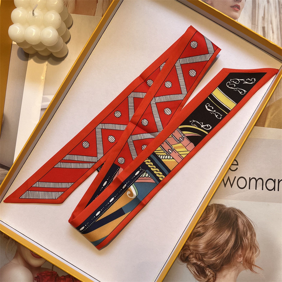 작은 빨간 책 블로거 같은 스타일 스트라이프 작은 실크 스카프 얇은 좁은 긴 여자 올 매치 타이 헤어 스카프 리본 헤어 벨트 새로운 스타일