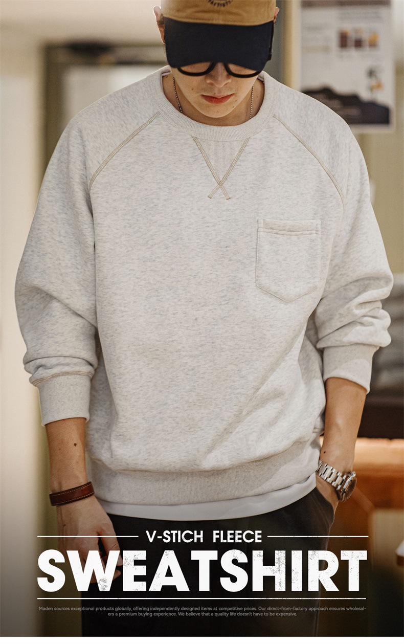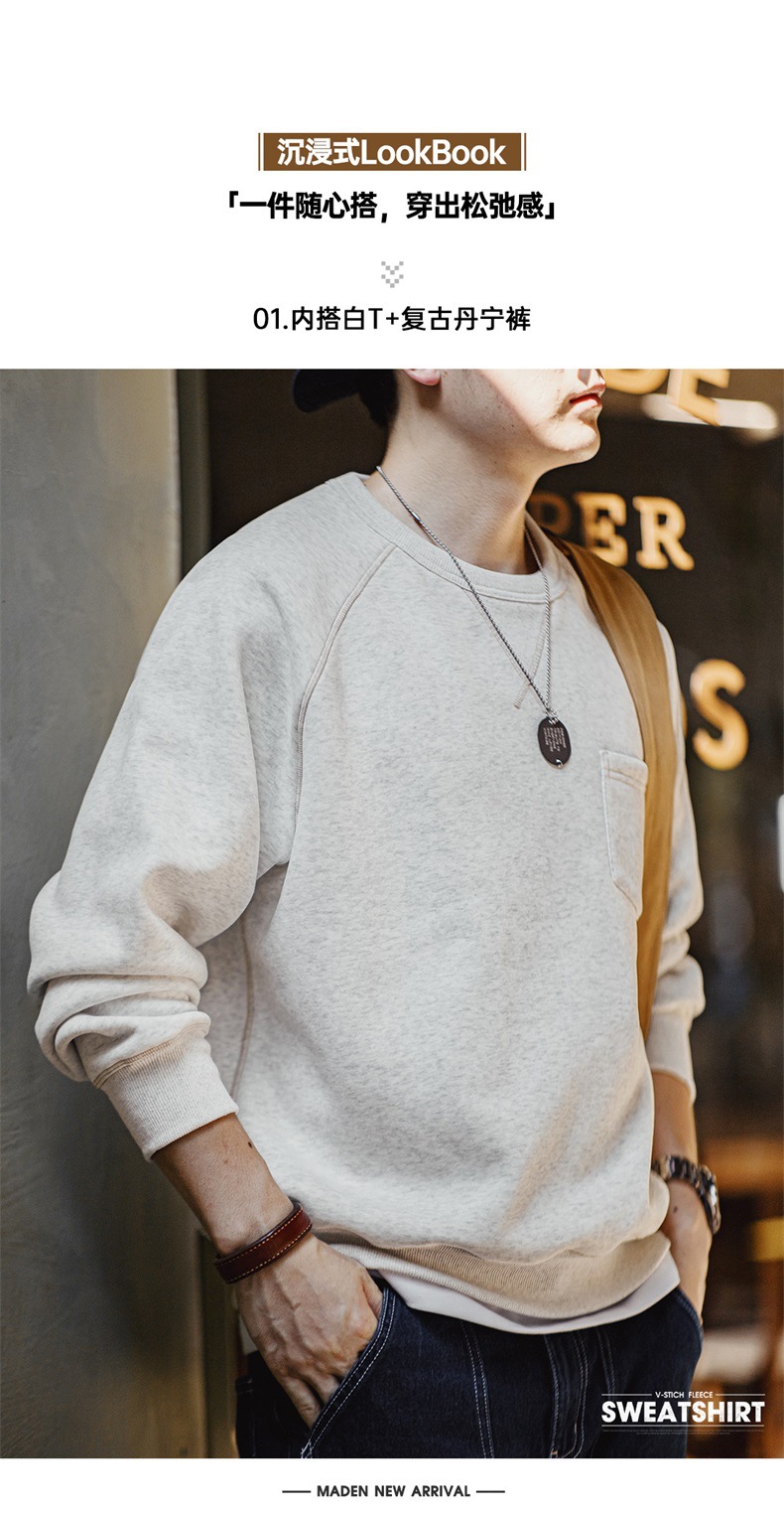 매든 툴링 아메리칸 스타일 레트로 중량급 라운드 넥 기모 땀 캐주얼 스포츠 가을과 겨울 남성을위한 따뜻한 탑