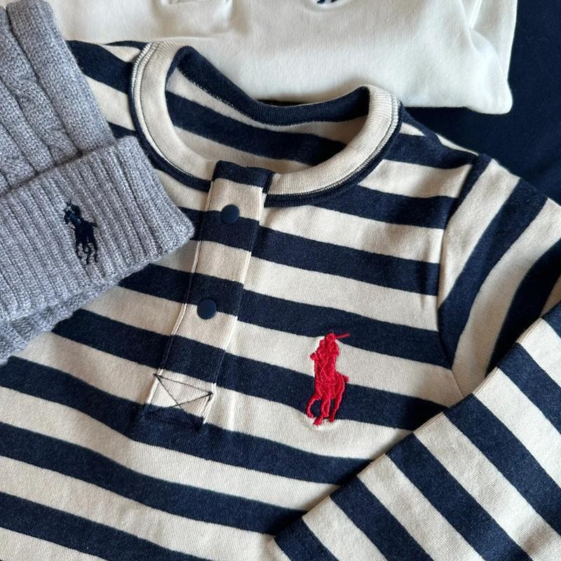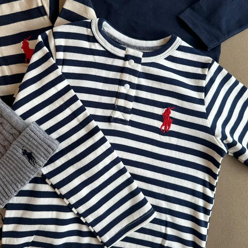 가을 슈퍼 외국 스타일 캐주얼 아기 줄무늬 긴팔 랩 옷 가을 옷 아기의 가을 옷 아기 점프 수트스토어 가기