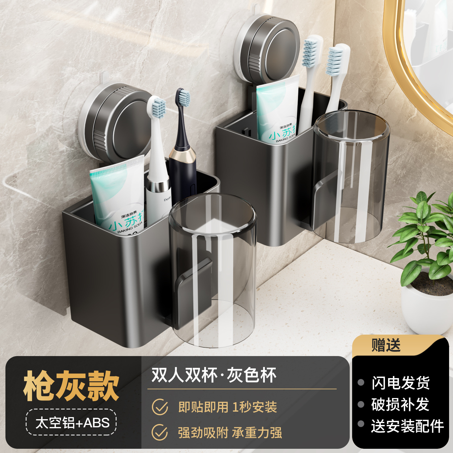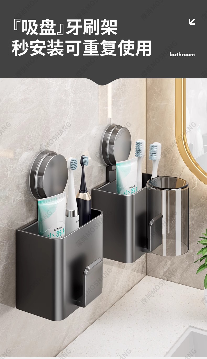 흡입 컵 전동 칫솔 컵 보관 랙 구강 세척제 컵 치약 칫솔 벽걸이 형 펀치없는 욕실 걸이 선반