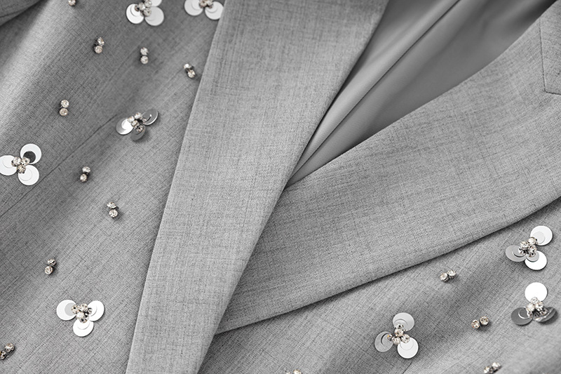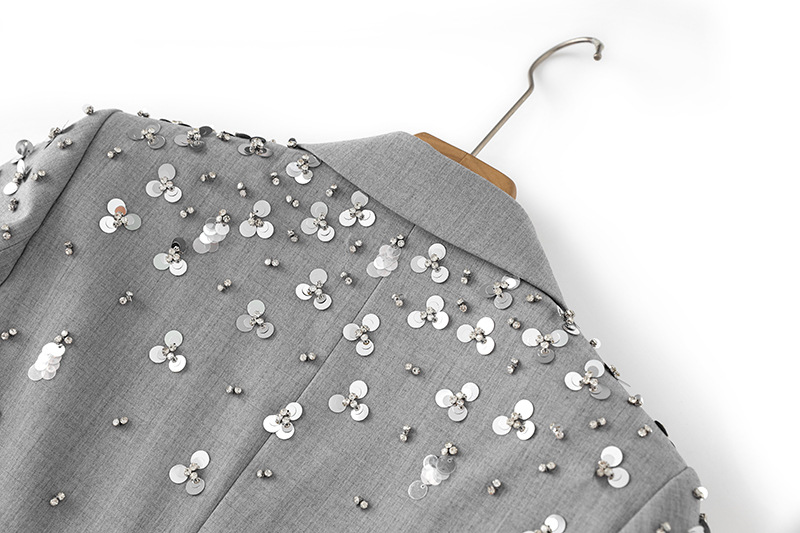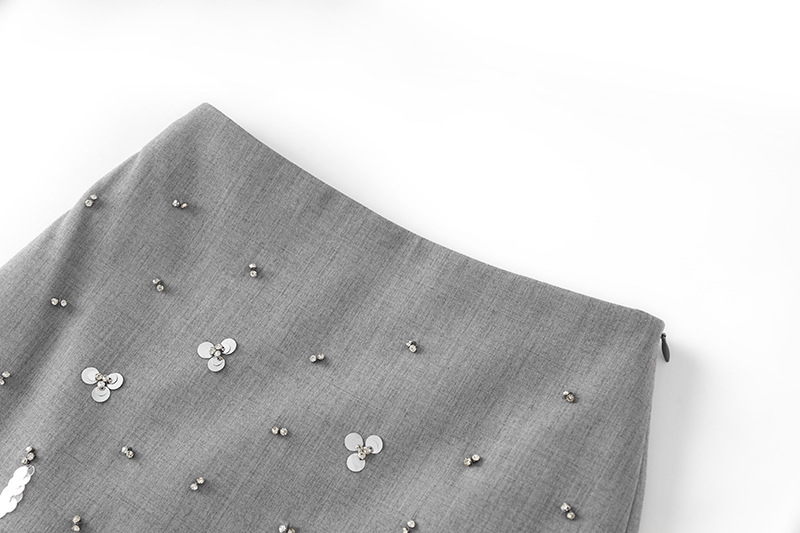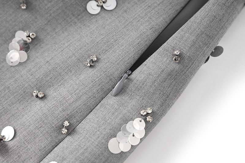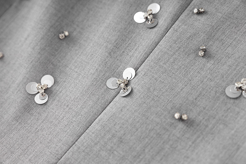 ~ 재고 ~ 2025 봄과 가을 새 회색 세트 원피스 중공업 구슬 패션 스커트 세트 투피스 세트스토어 가기