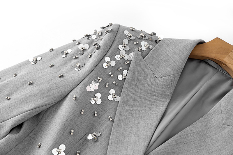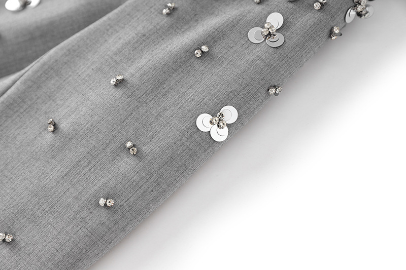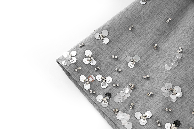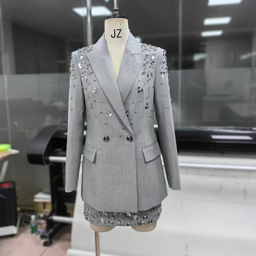 ~ 재고 ~ 2025 봄과 가을 새 회색 세트 원피스 중공업 구슬 패션 스커트 세트 투피스 세트