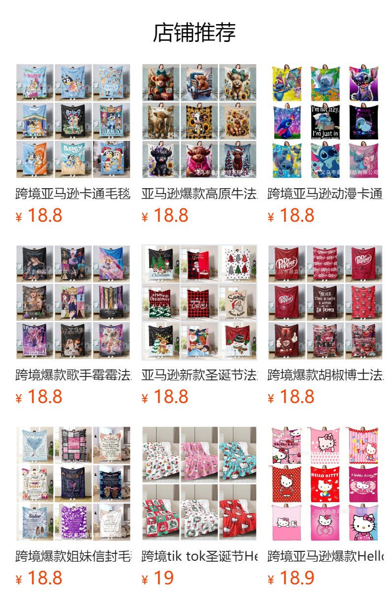 产品工艺:使用单面数码印花(可做双面数码印花,具体请咨询客服)及热转印工艺,图片为分辨率3000*3000的高清图,印刷清晰,色牢度高,平车可做卷边工艺、包边工艺、拷边工艺,除异形毯为拷边工艺外,其他毯子下单默认卷边工艺,包边请咨询客服。