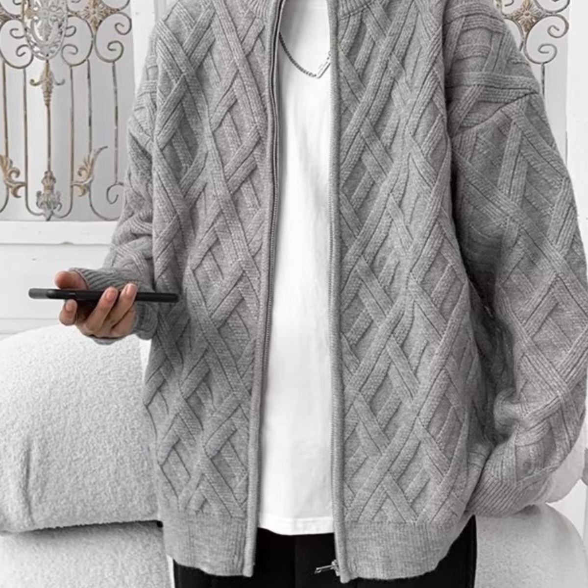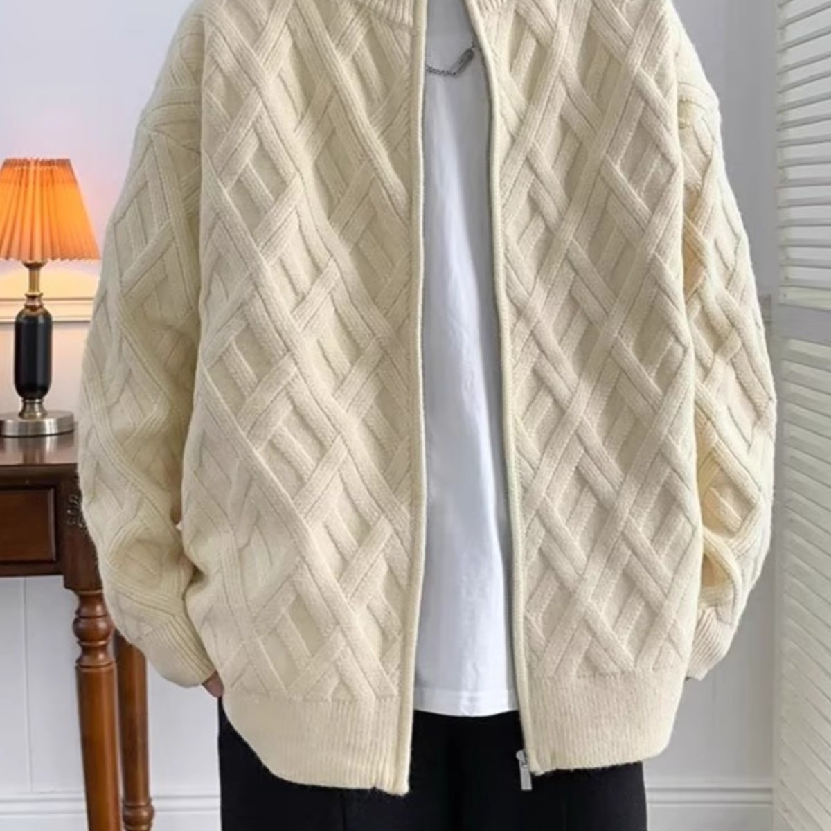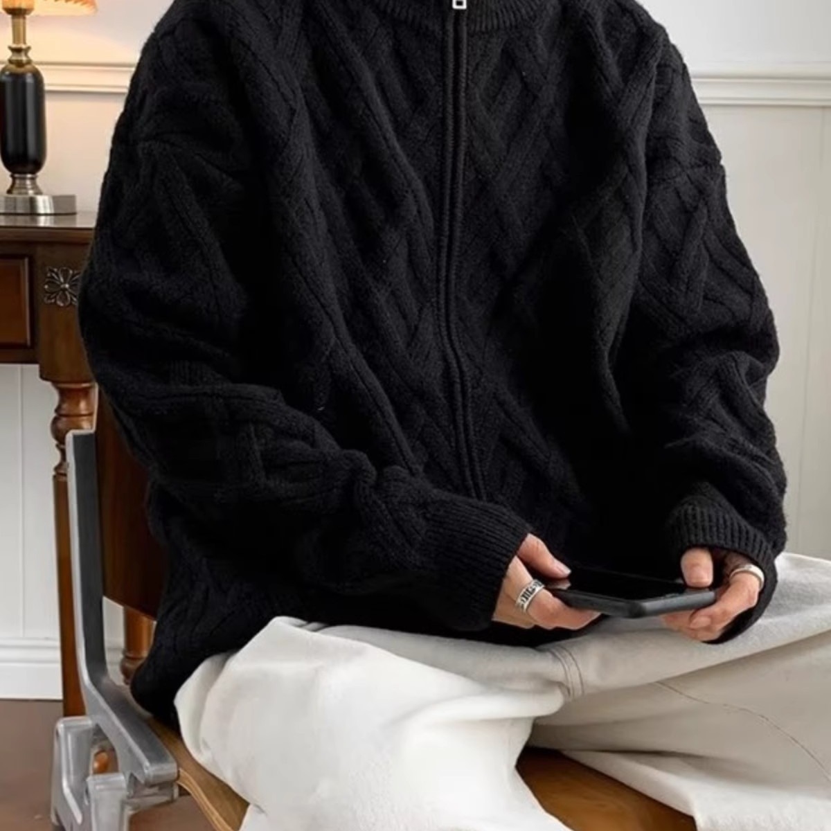 가을과 겨울 두꺼운 스웨터 남자 한국 스타일 유행 느슨한 일본 니트 스웨터 겨울 Ins 홍콩 스타일 게으른 스웨터 재킷스토어 가기