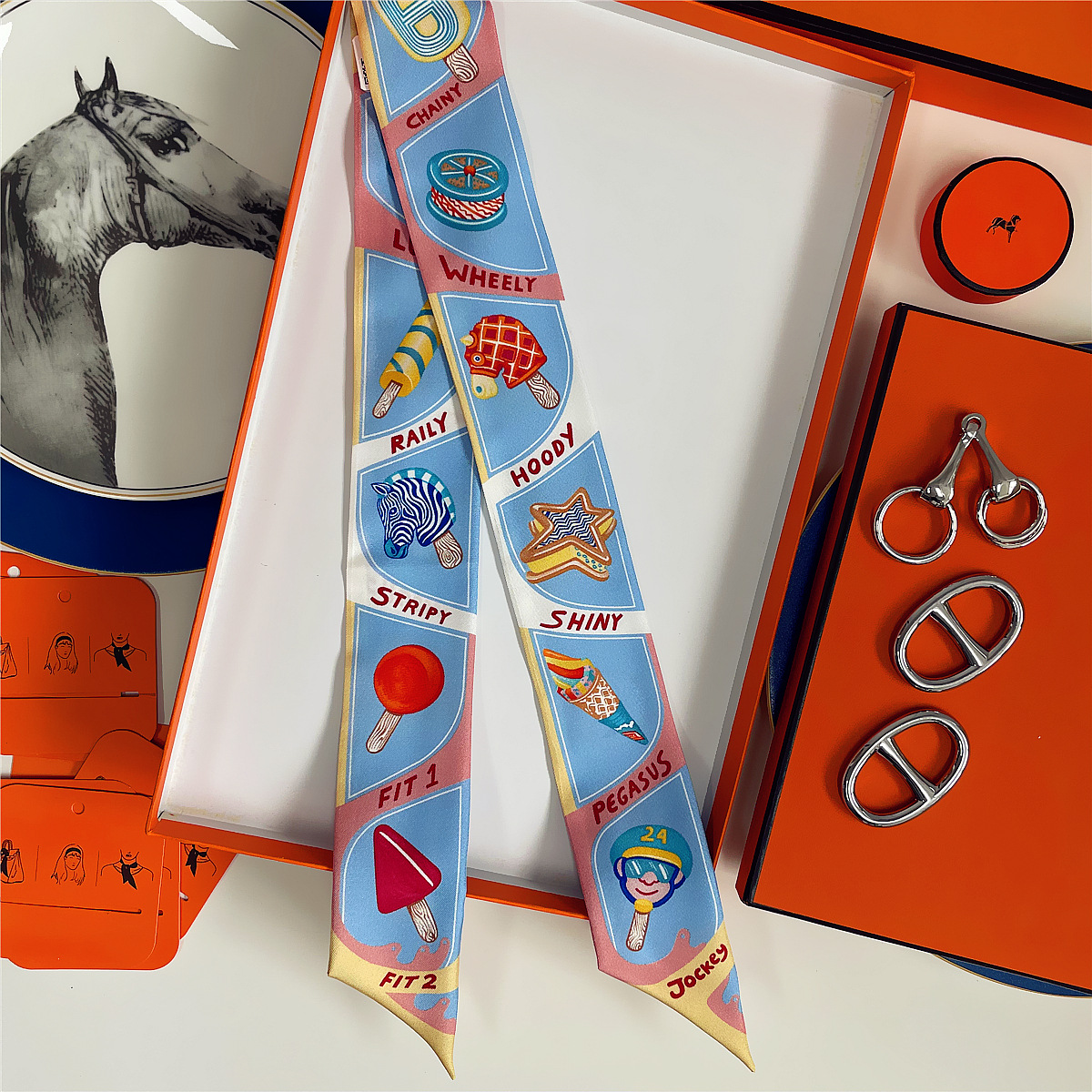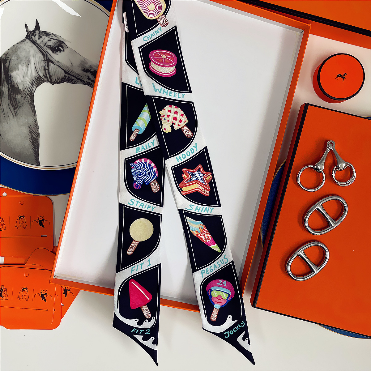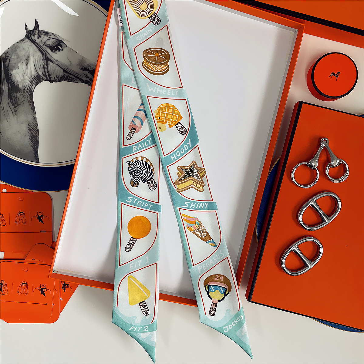 [재미있는 아이스크림] 100% 뽕나무 실크 하이 엔드 18 Mm 트윌 실크 스카프 여성 작은 스카프스토어 가기