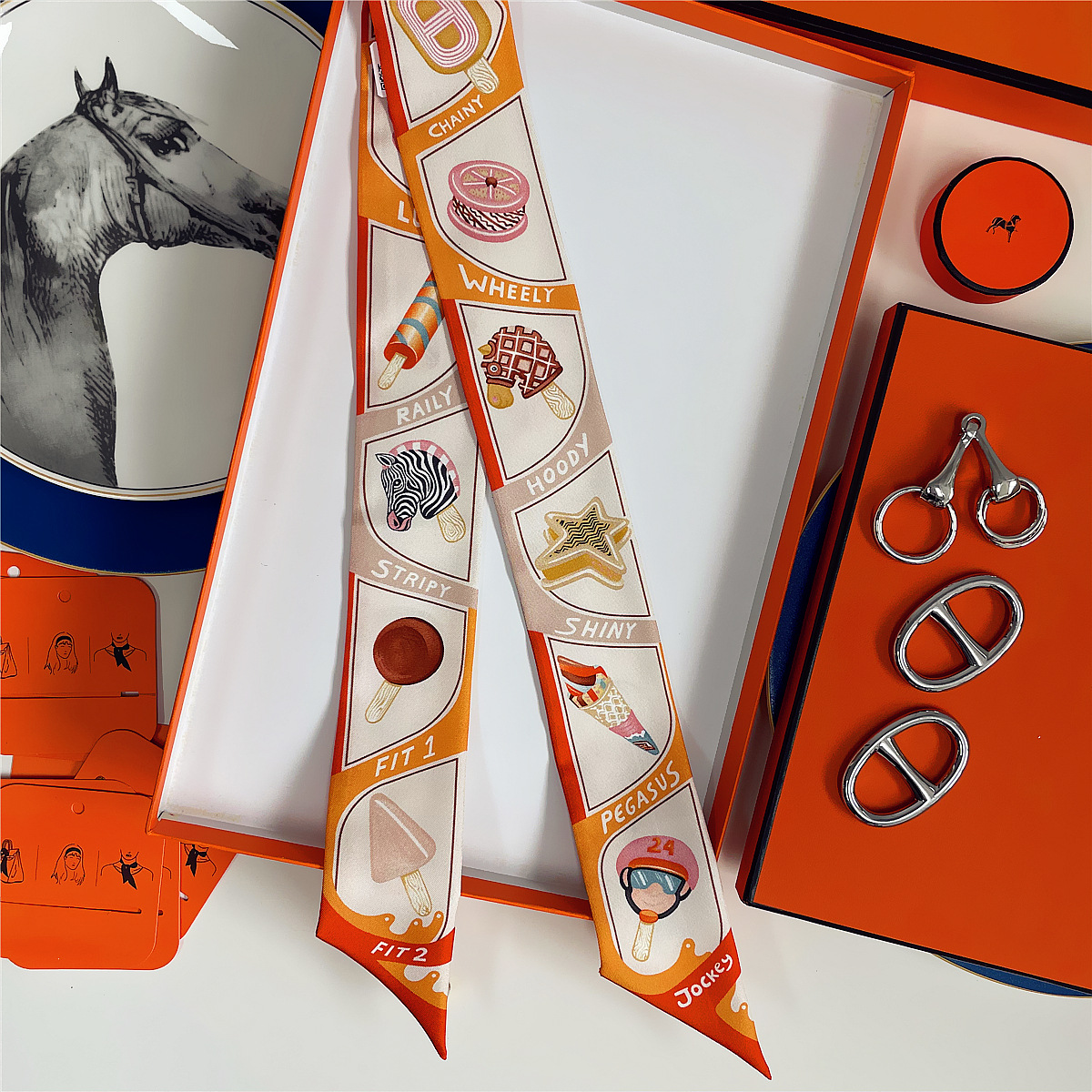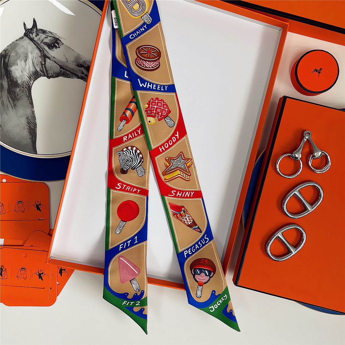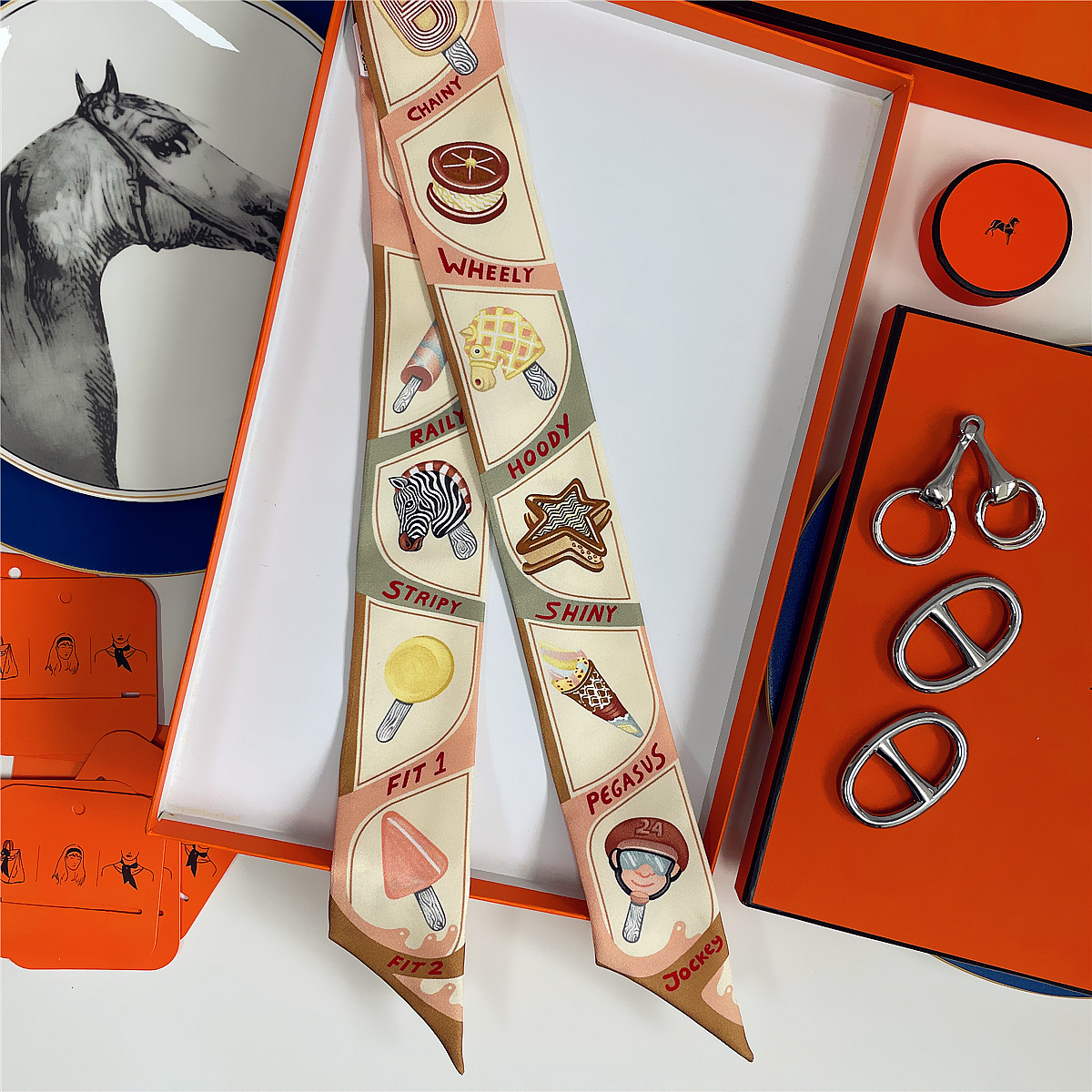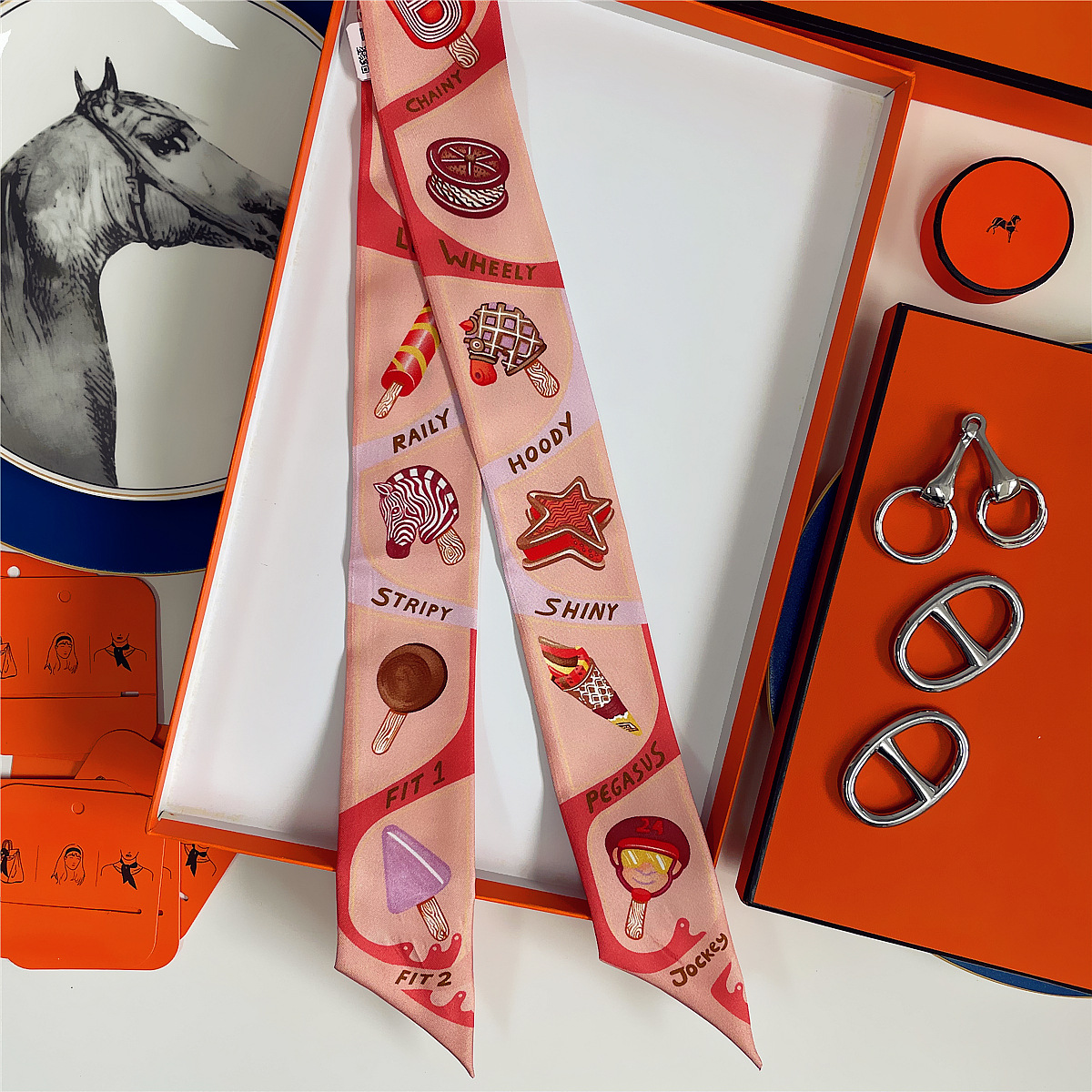 [재미있는 아이스크림] 100% 뽕나무 실크 하이 엔드 18 Mm 트윌 실크 스카프 여성 작은 스카프스토어 가기