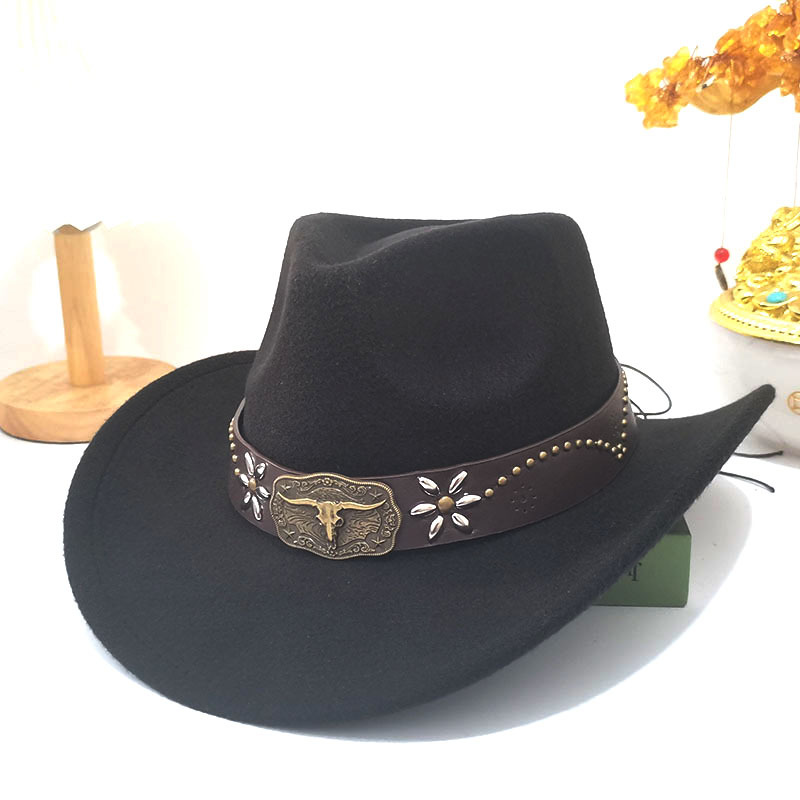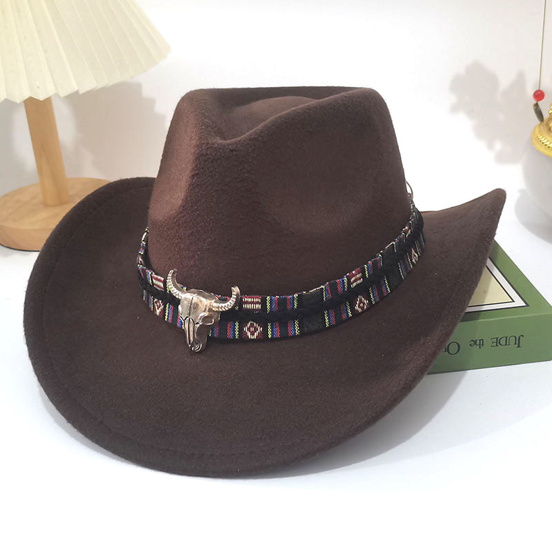 해외 컬링 카우보이 모자 개인화 된 타우렌 액세서리 서양 카우보이 모자 야외 등산 햇살 모자 컬링 모직 모자