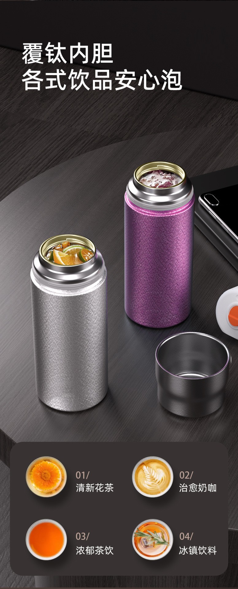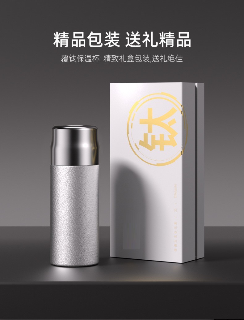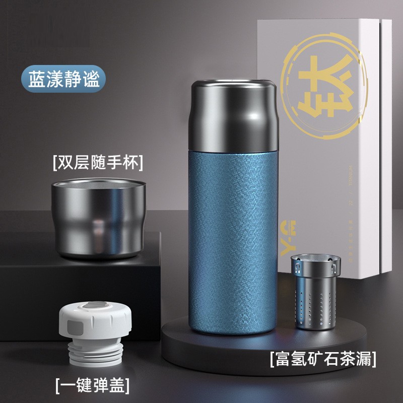 티타늄 컵 보온병 컵 커버 티타늄 진공 더블 레이어 휴대용 차 컵 항균 건강 사업 빛 고급 고급 선물 물 컵스토어 가기