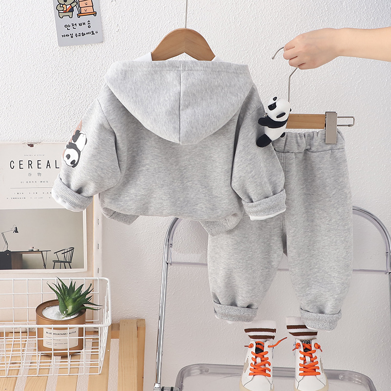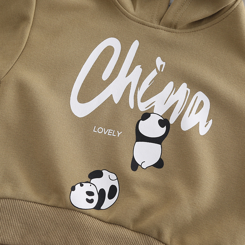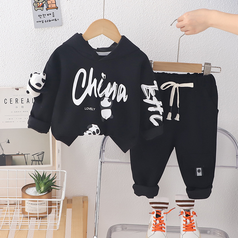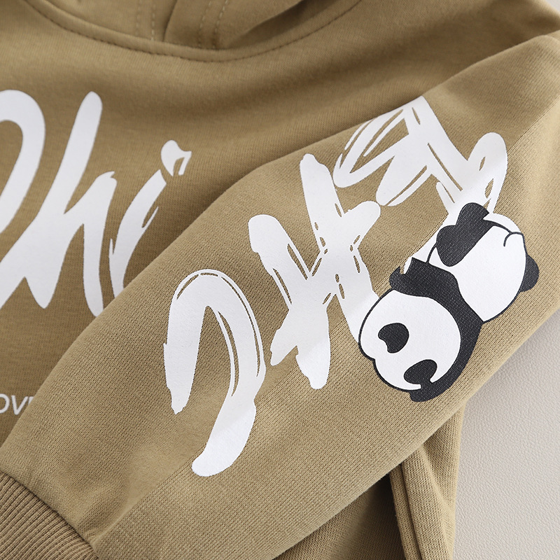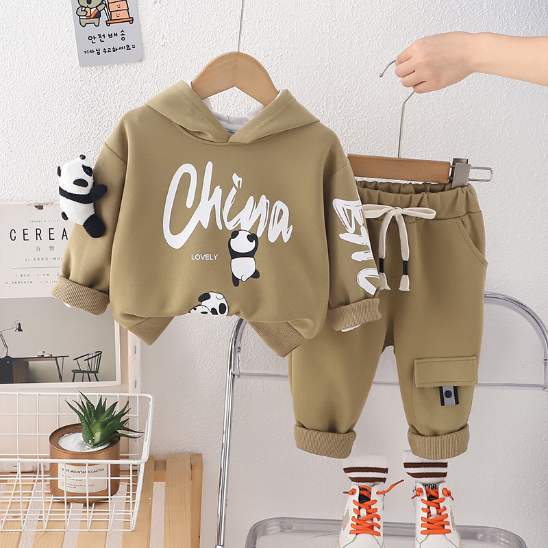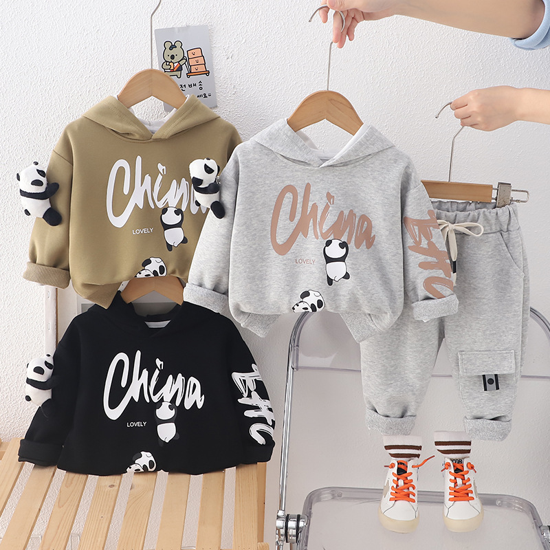 봄 긴 소매 세트 2025 새로운 아기 패션 튀김 거리 소년 아동복 입체 팬더 긴 소매 투피스 패션스토어 가기
