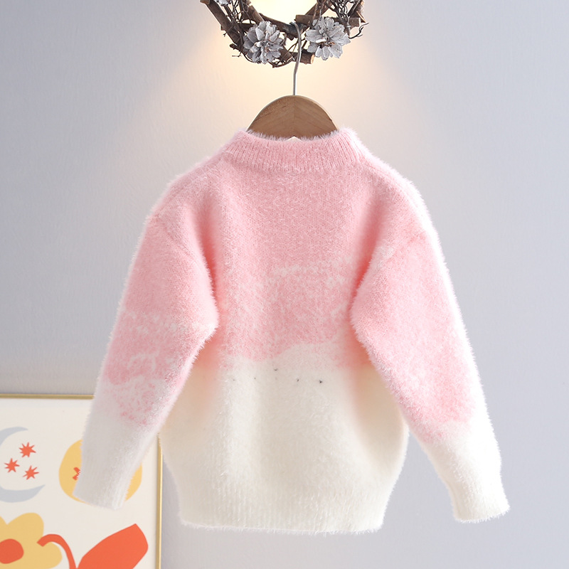 어린이 밍크 양털 스웨터베이스 셔츠 2024 새로운 가을과 겨울 중년 어린이 그라디언트 두꺼운 스웨터 탑 소년스토어 가기