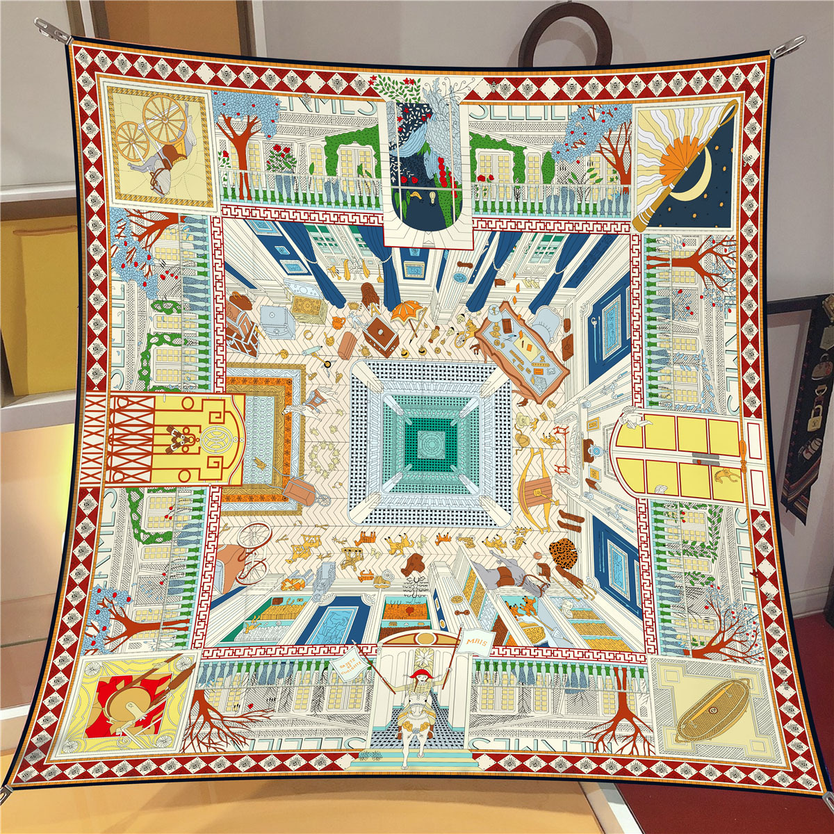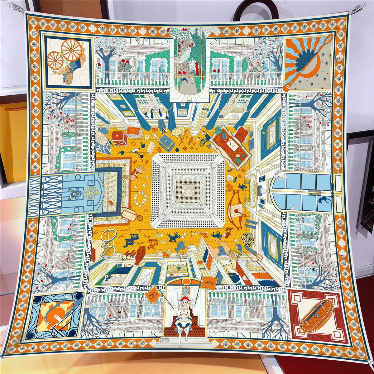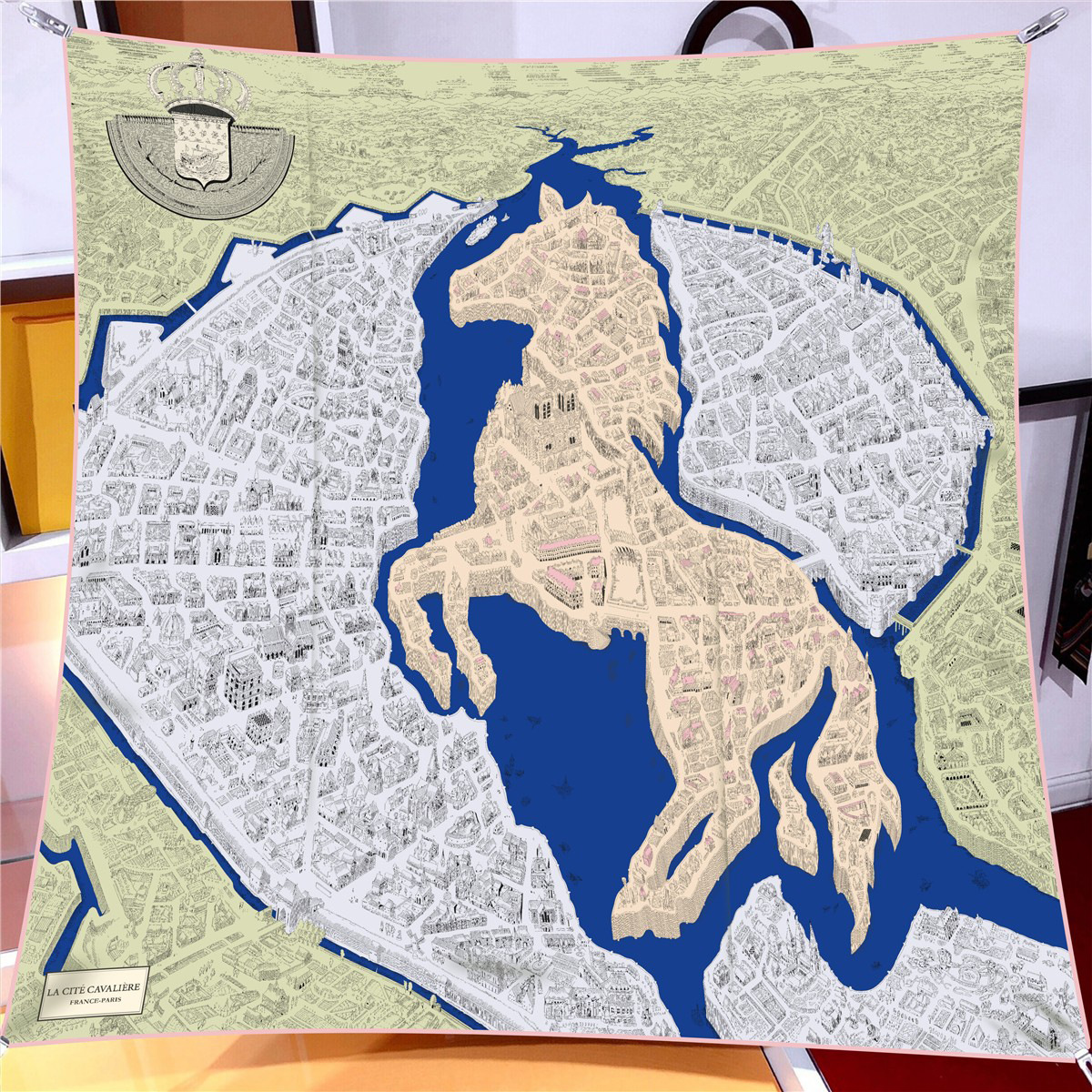 [플래그십] 대형 보트 패턴 테이블 버전 인쇄 하이 엔드 새로운 여성 틸트 실크 90cm 대형 스퀘어 스카프