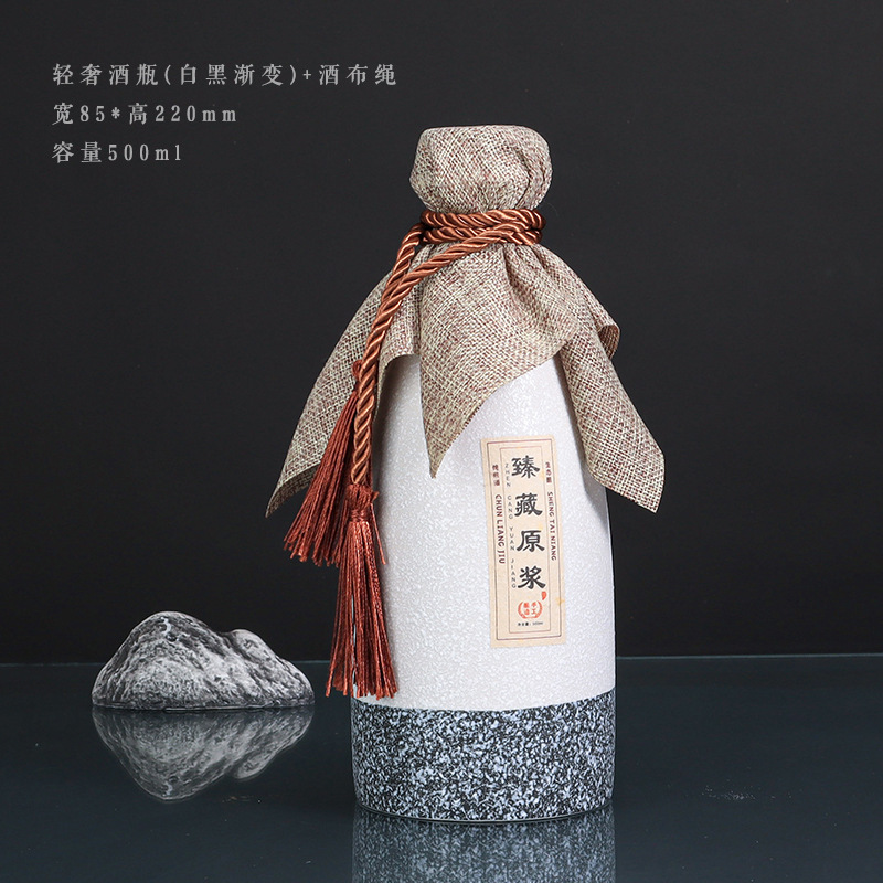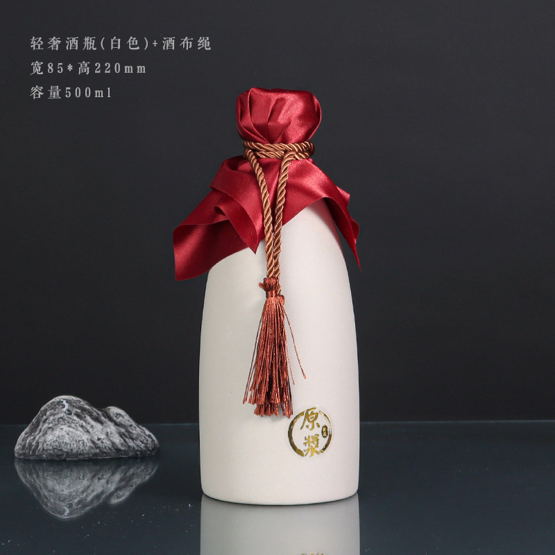 • 0.5kg 라이트 럭셔리 와인병(2개 섹션의 반투명 흰색 및 검정색) + 커버 천 + 로프