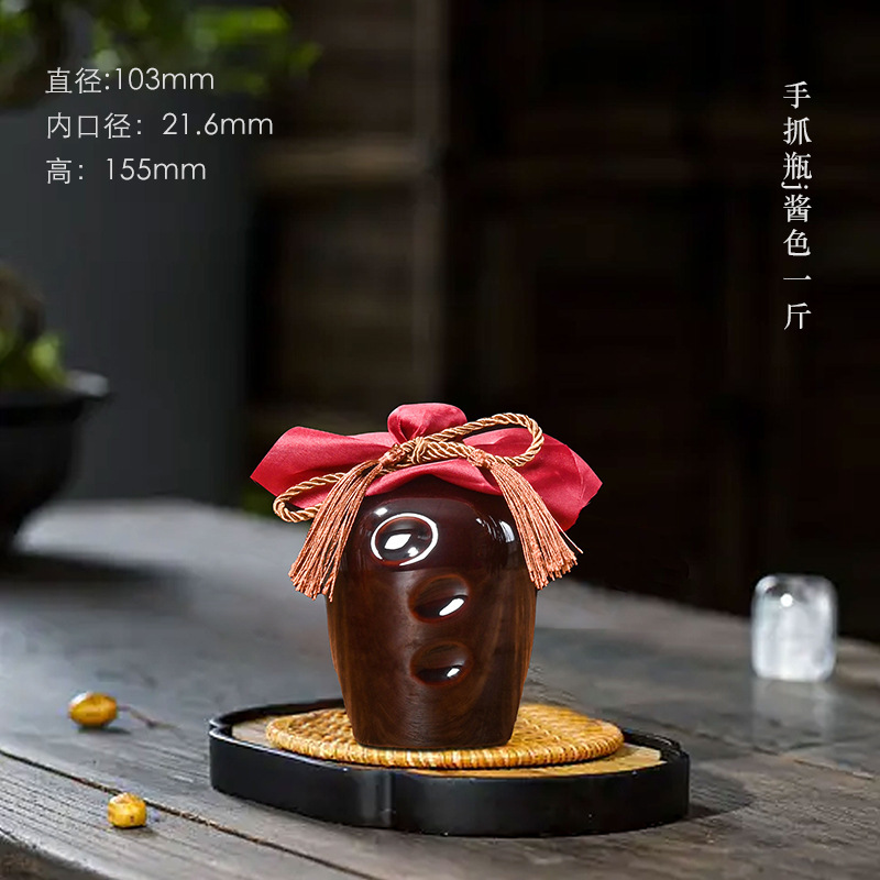 • 잡지병 일반 진흙 1.5kg + 빨간색 실크 천 갈색 밧줄 + 투명 수축 필름/빨간색 라벨