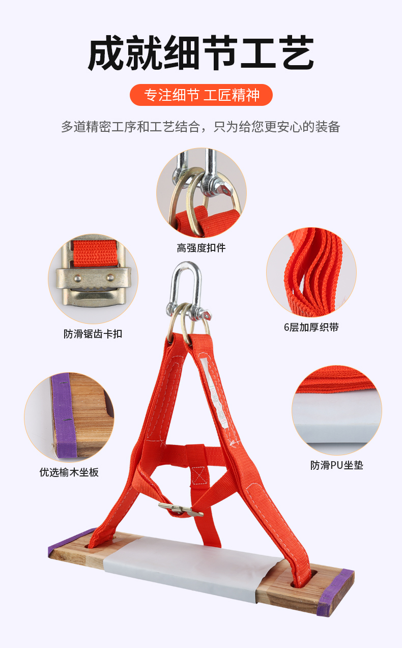 좌석 보드 수지 야외 낙하 안전 벨트 외부 벽 청소 매달려있는 보드 공중 작업 삼각형 느릅 나무 안전 시트 보드