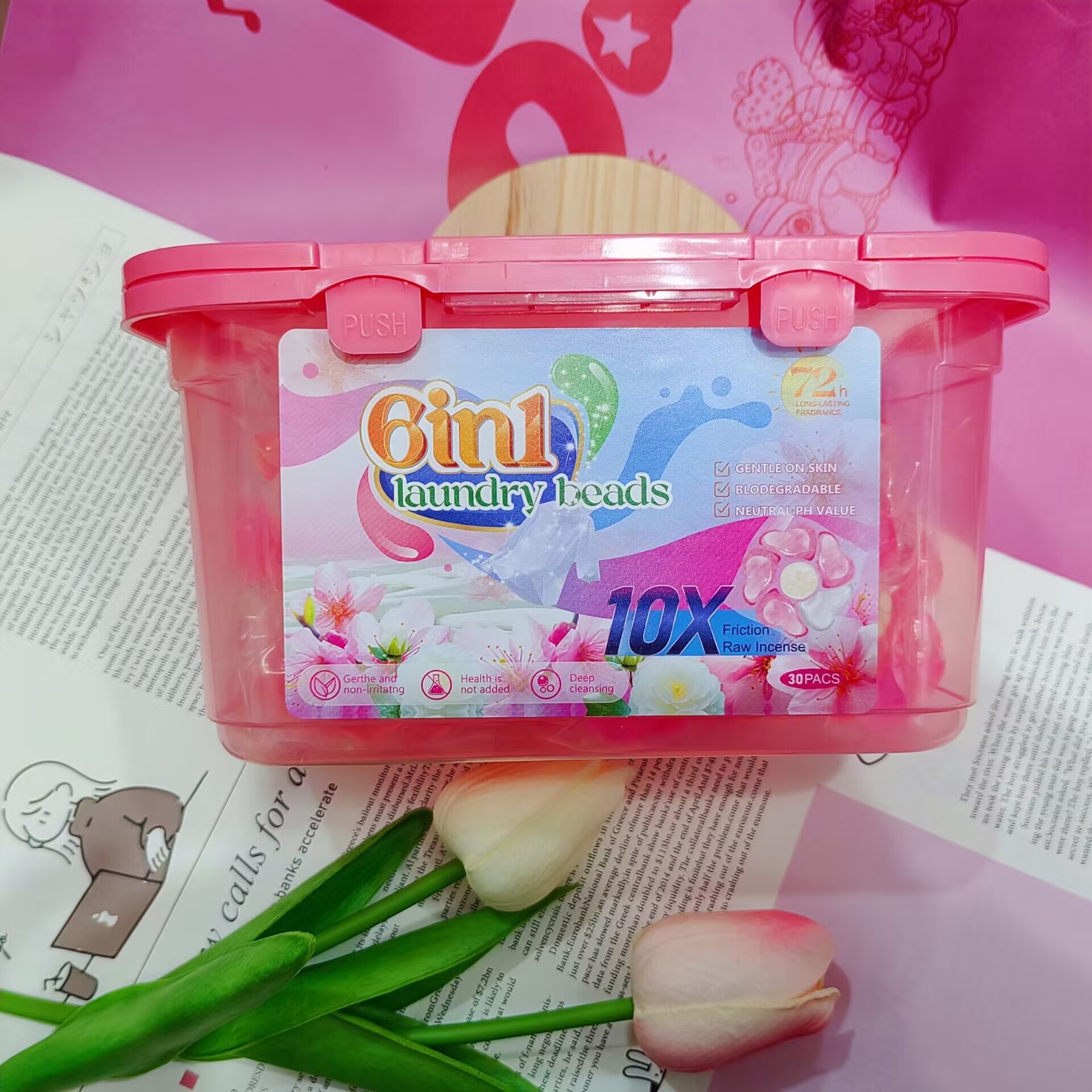 6-in-1 세탁볼, 오염제거 및 향기 유지, 농축 세탁세제, 6배 세탁볼 도매, 색상 보호, 딥 클리닝, 세탁기 사용 가능