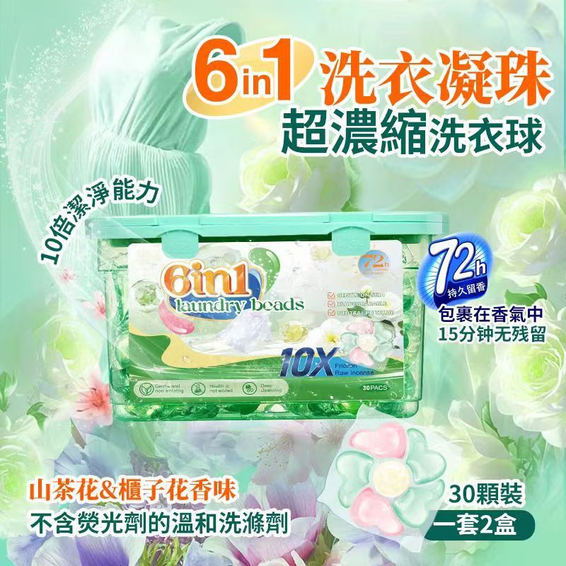 6-in-1 세탁볼, 오염제거 및 향기 유지, 농축 세탁세제, 6배 세탁볼 도매, 색상 보호, 딥 클리닝, 세탁기 사용 가능스토어 가기