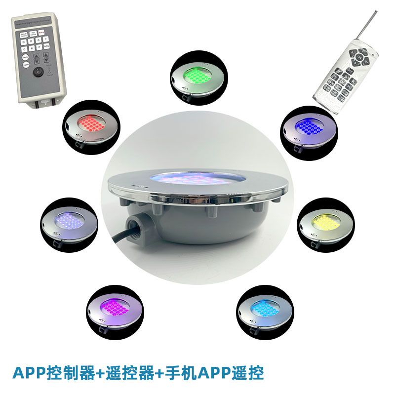 국경 스테인레스 스틸 임베디드 수영장 램프 RGB 다채로운 원격 제어 숨겨진 수중 벽 램프 수중 램프 다이빙 램프