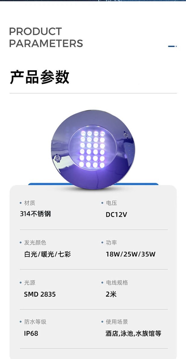 국경 스테인레스 스틸 임베디드 수영장 램프 RGB 다채로운 원격 제어 숨겨진 수중 벽 램프 수중 램프 다이빙 램프스토어 가기