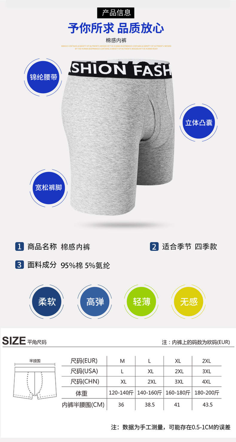 새로운 유럽 사이즈 남성 속옷, 남성용 면 사각팬티, 통기성 스포츠 대형 사이즈, 롱핏 사각팬티스토어 가기