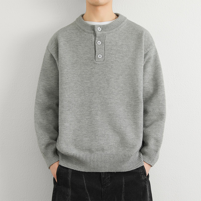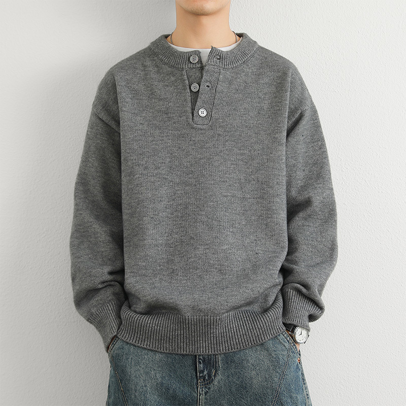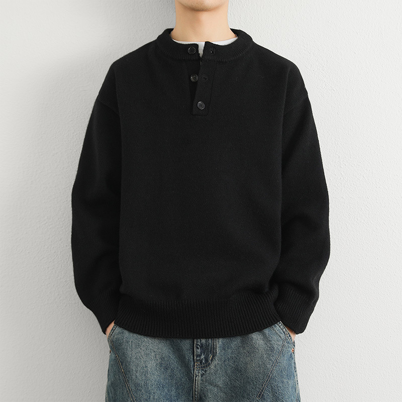 2024 년 새로운 가을과 겨울 게으른 휴식 헨리 칼라 니트 스웨터 스웨터 느슨한 두꺼운 내부 스웨터 트렌디 남성