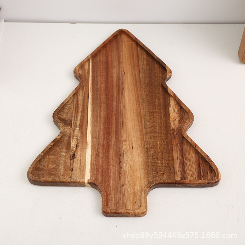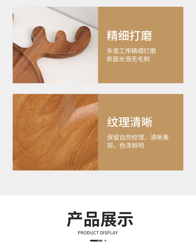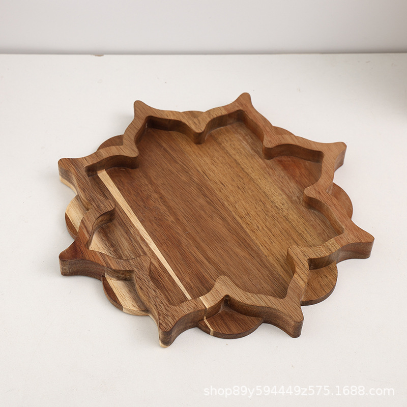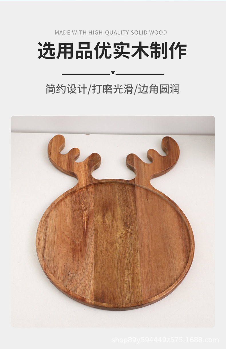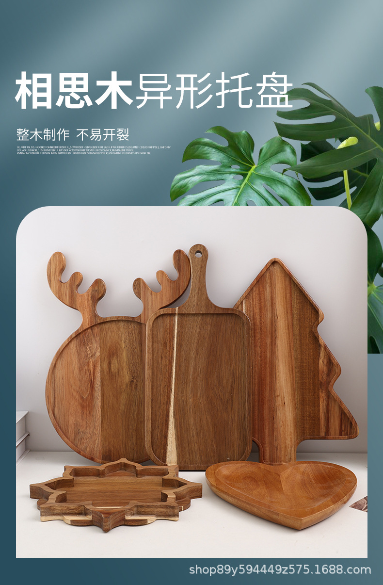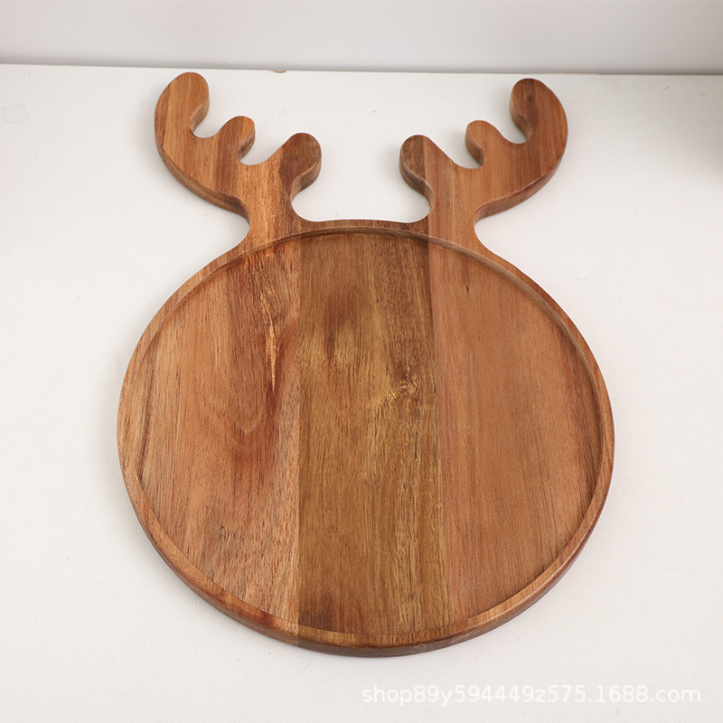 아카시아 나무 트레이 앤틀러 디너 플레이트 양면 단단한 나무 요리 식품 보드 어린이 창조적 인 과일 플레이트 디저트 커피 나무 트레이