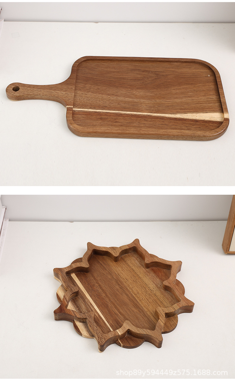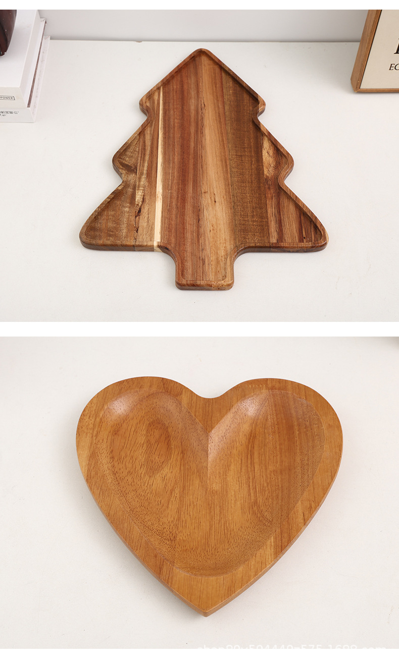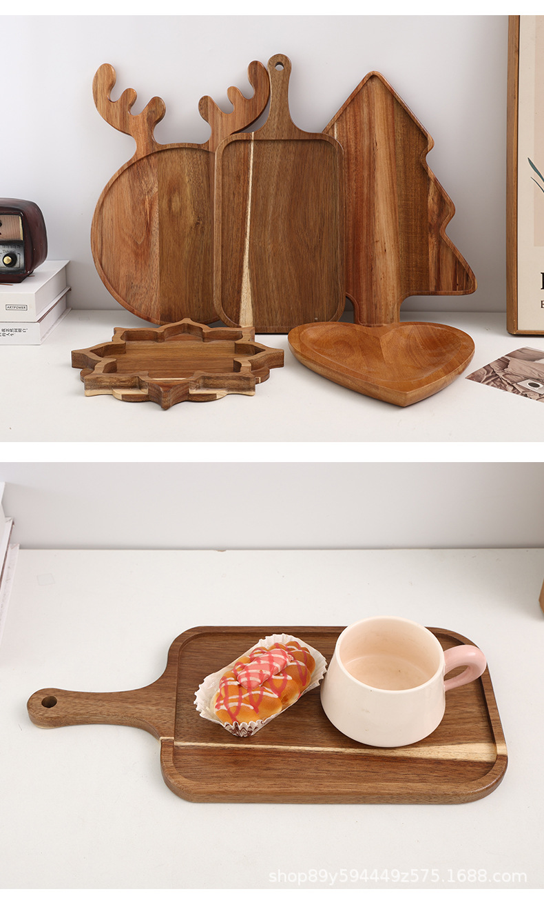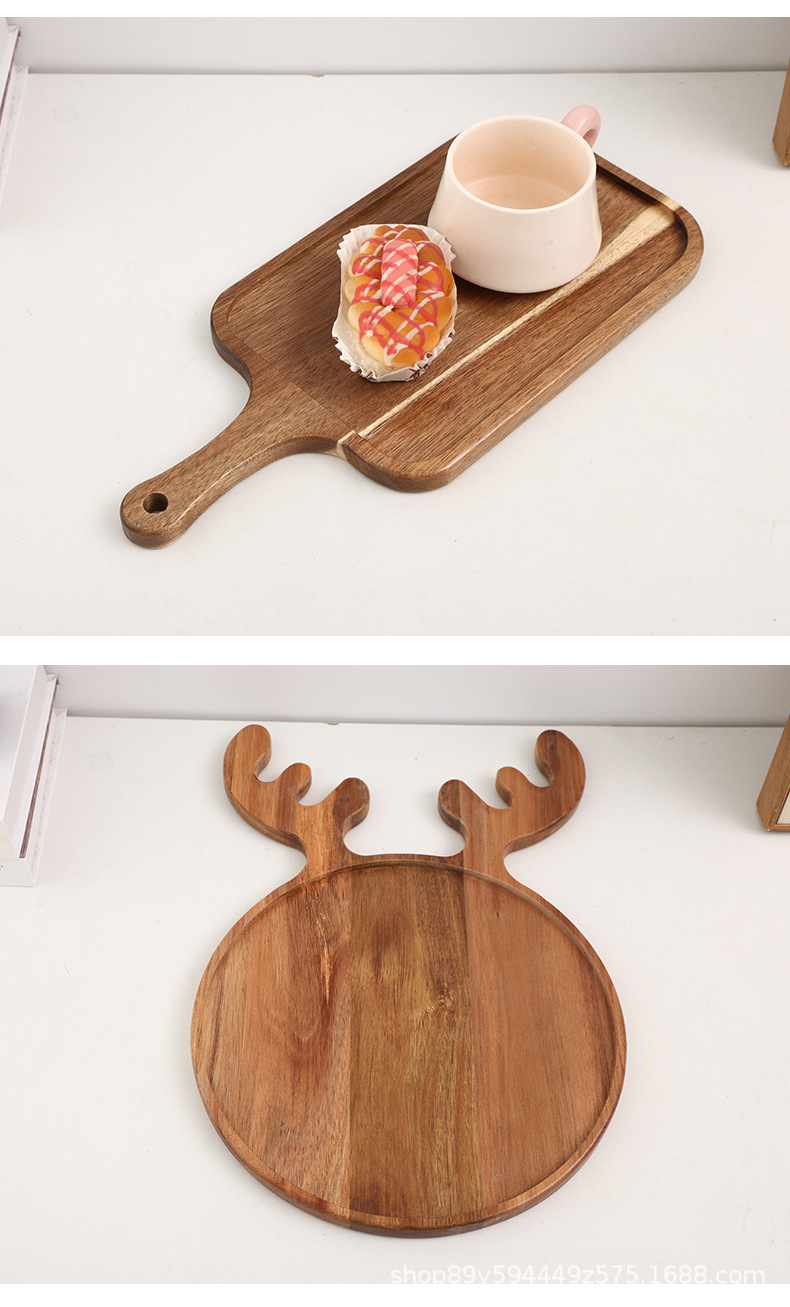 아카시아 나무 트레이 앤틀러 디너 플레이트 양면 단단한 나무 요리 식품 보드 어린이 창조적 인 과일 플레이트 디저트 커피 나무 트레이스토어 가기