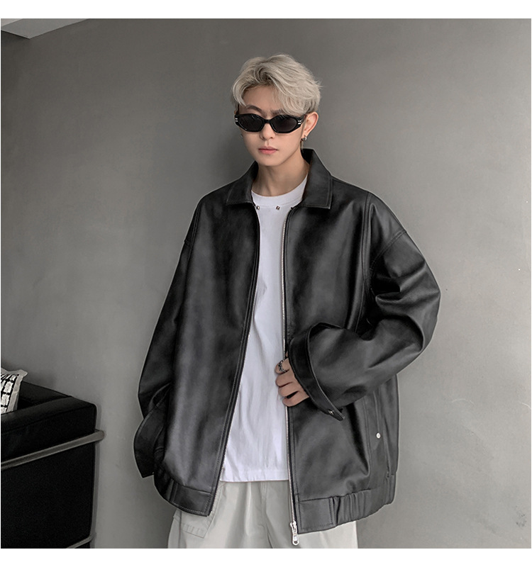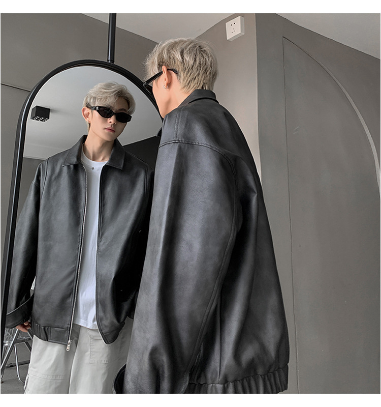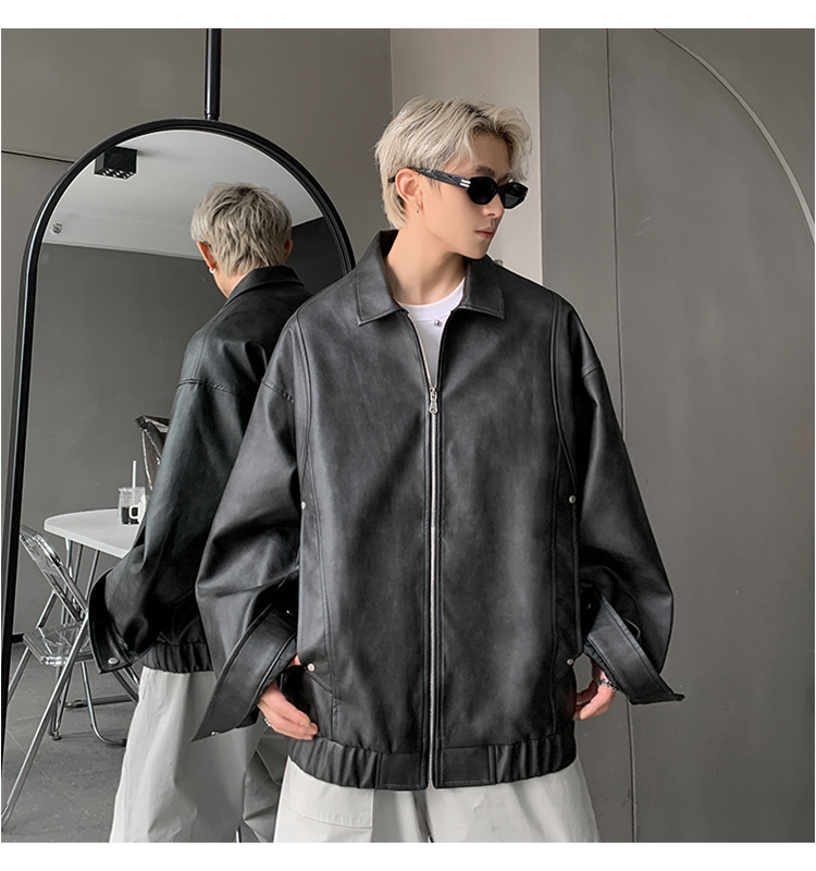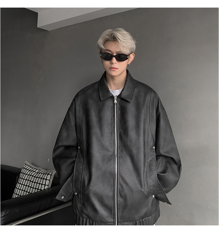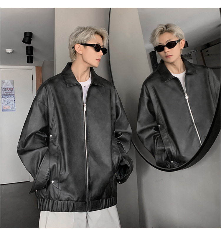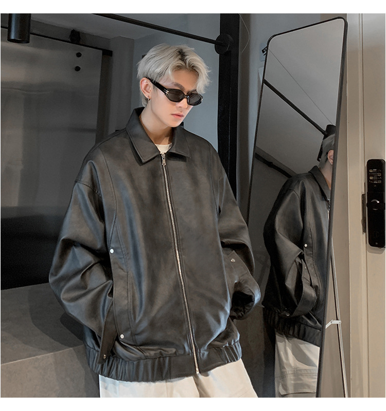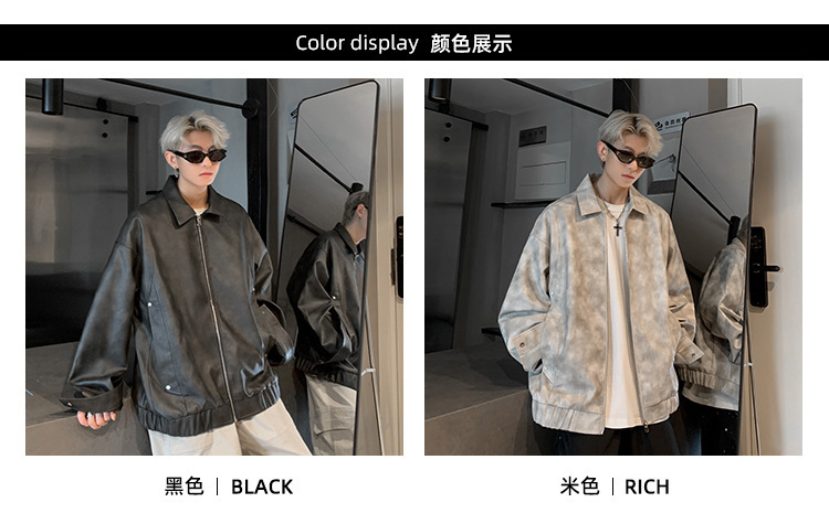 넥타이 염색 PU 가죽 재킷 남자의 봄과 가을 2024 새로운 빈티지 Deconstruction 유행 브랜드 청소년 캐주얼 옷깃 재킷