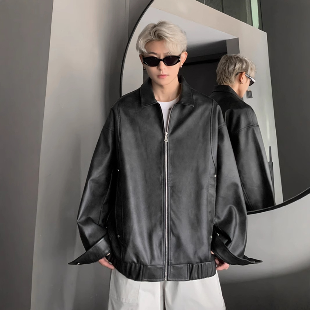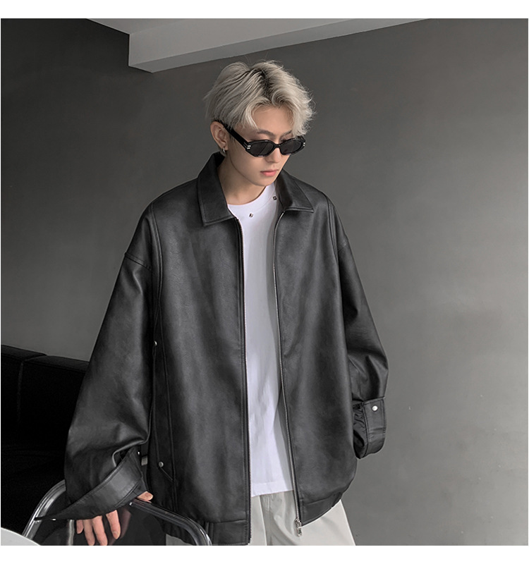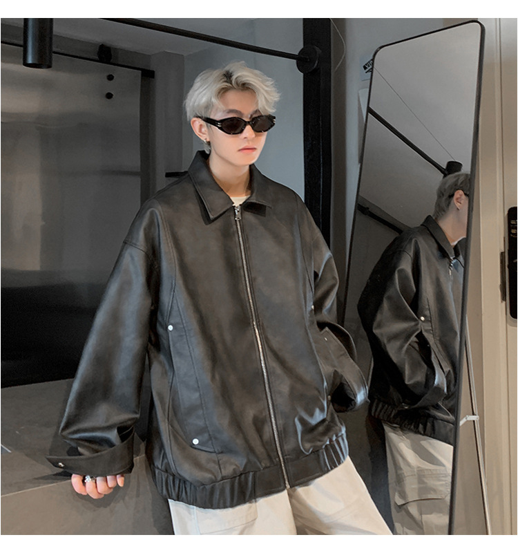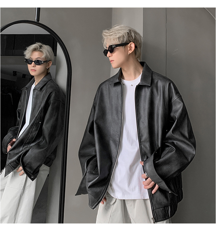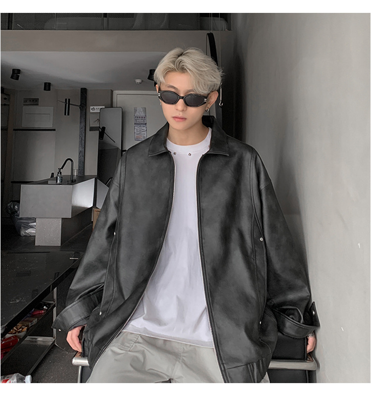 넥타이 염색 PU 가죽 재킷 남자의 봄과 가을 2024 새로운 빈티지 Deconstruction 유행 브랜드 청소년 캐주얼 옷깃 재킷