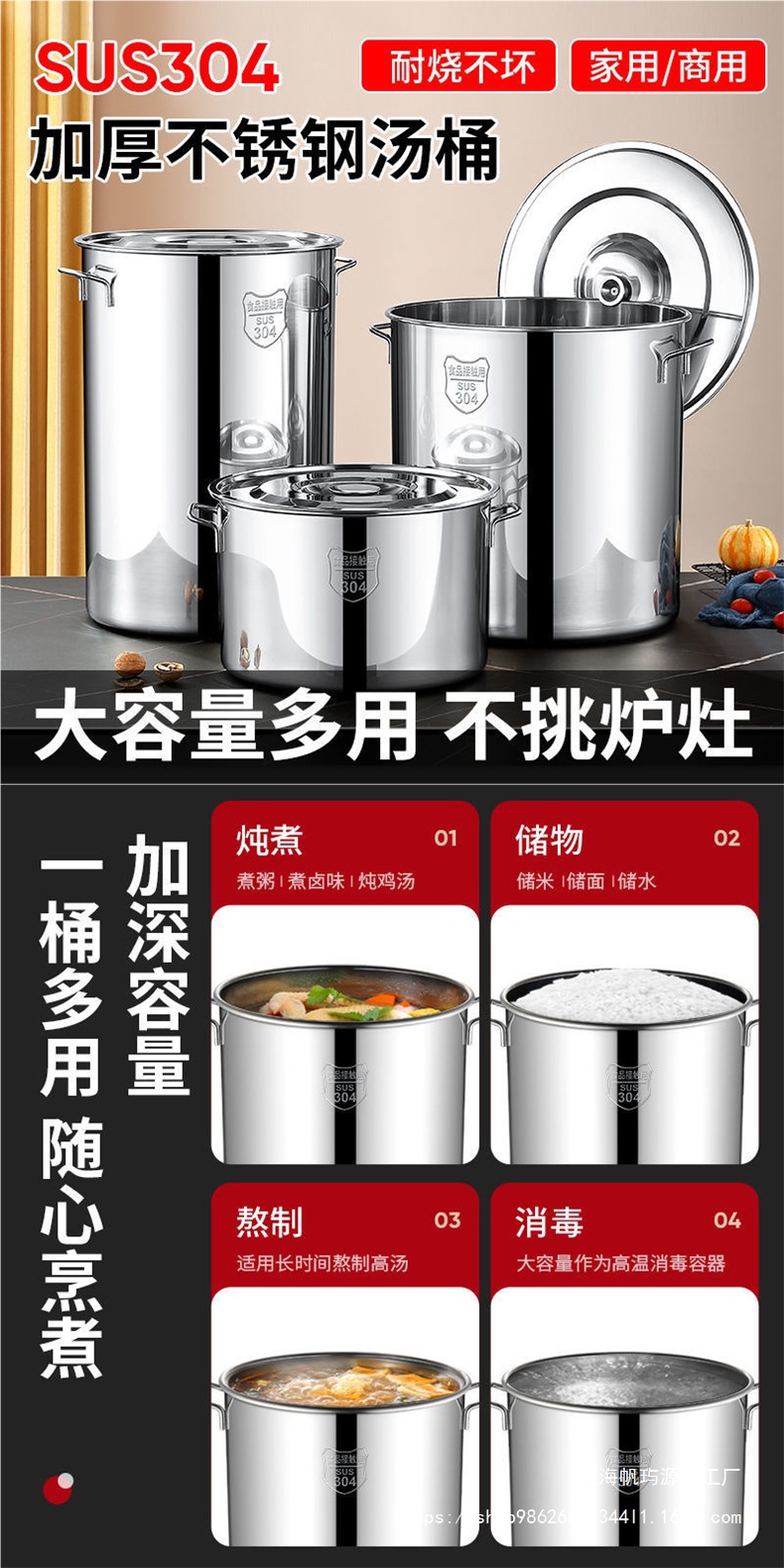 304 스테인레스 스틸 버킷 뚜껑 수프 냄비를 가진 두꺼운 상업용 수프 양동이 대용량 물 저장 버킷 스테인레스 스틸 소금물 한국 가정스토어 가기