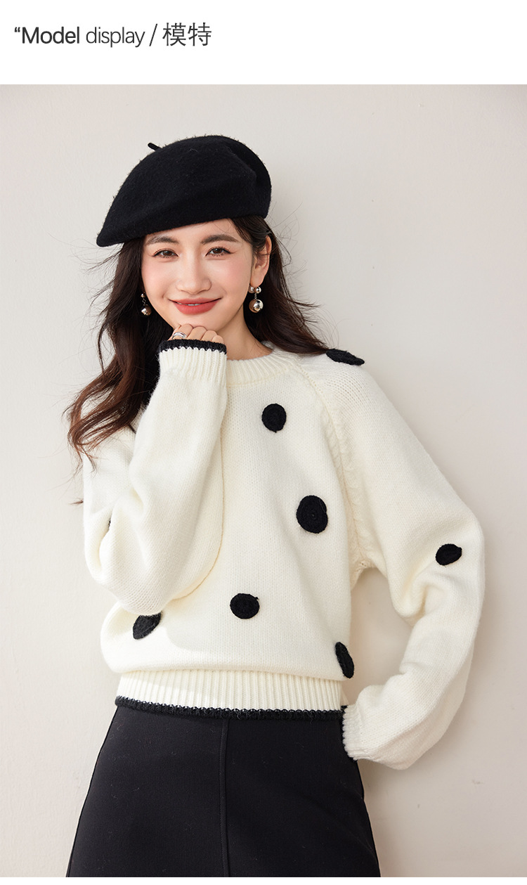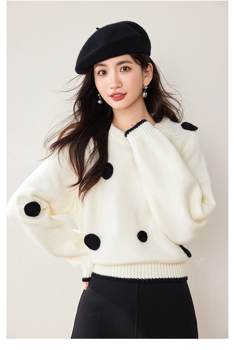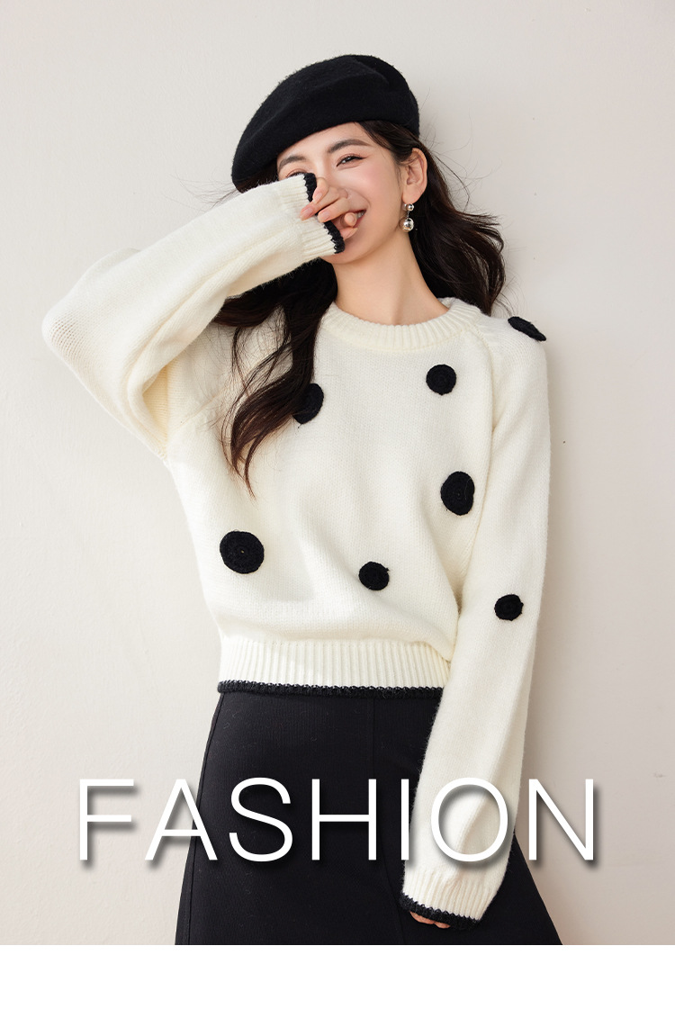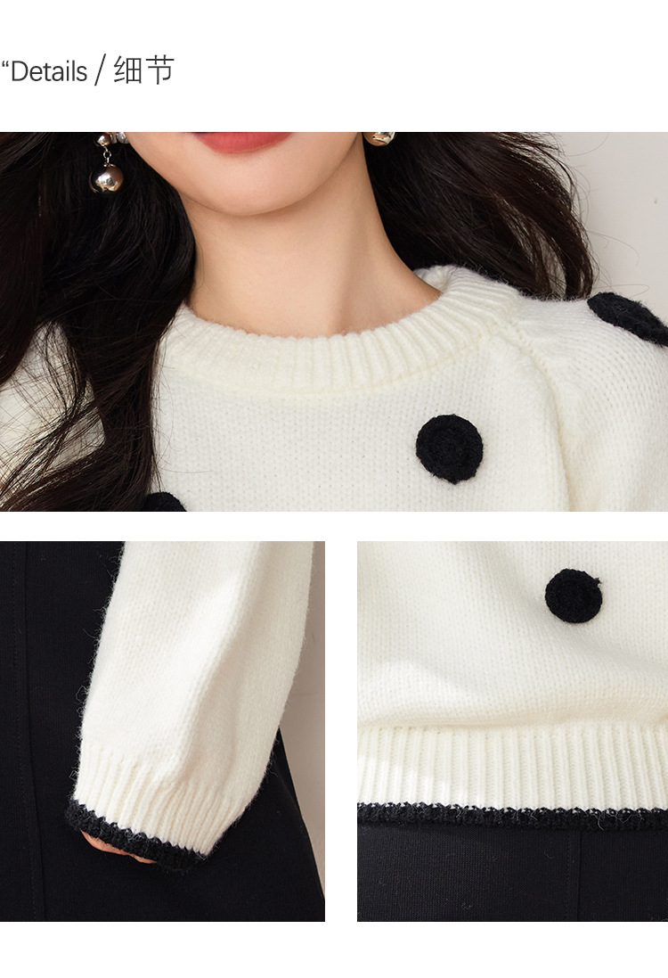 2024 가을과 겨울 새로운 달콤한 귀여운 웨이브 도트 부드러운 왁스 따뜻한 작은 풀오버 라운드 넥 니트 짧은 스웨터 여성용스토어 가기