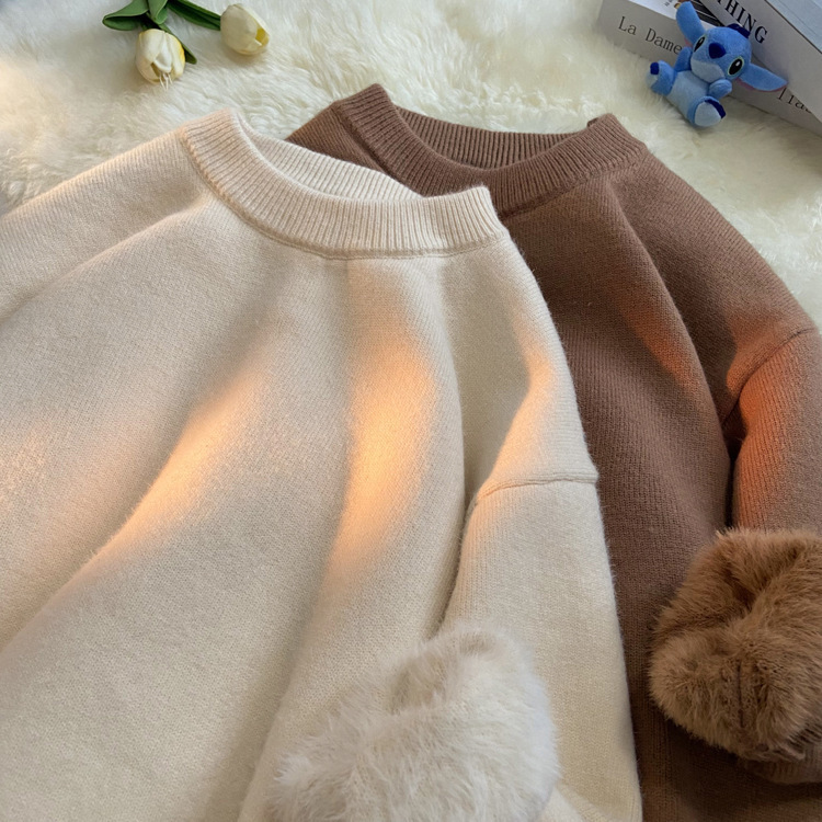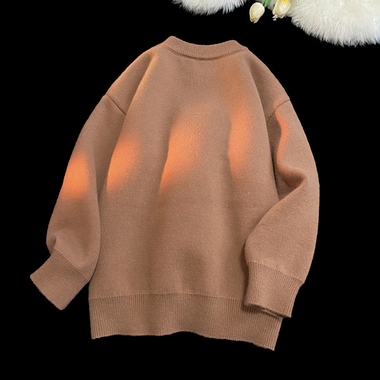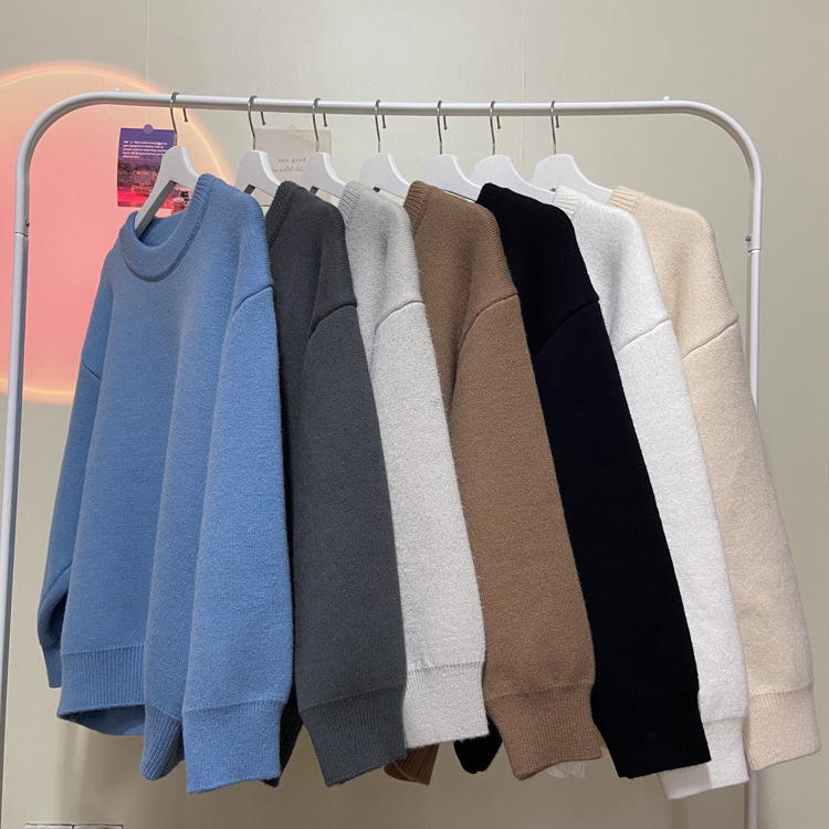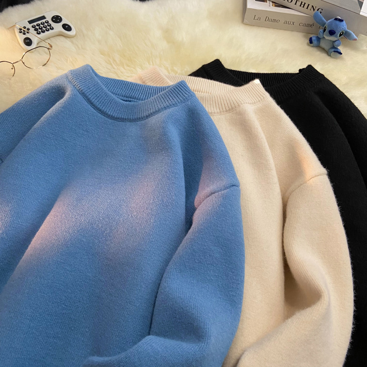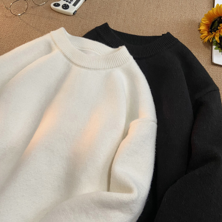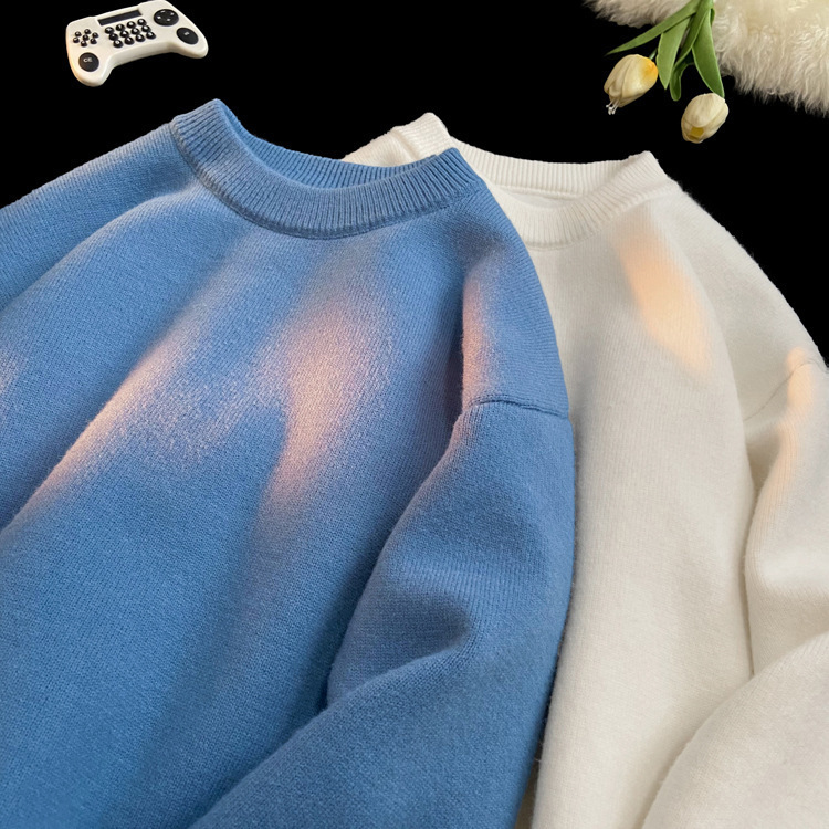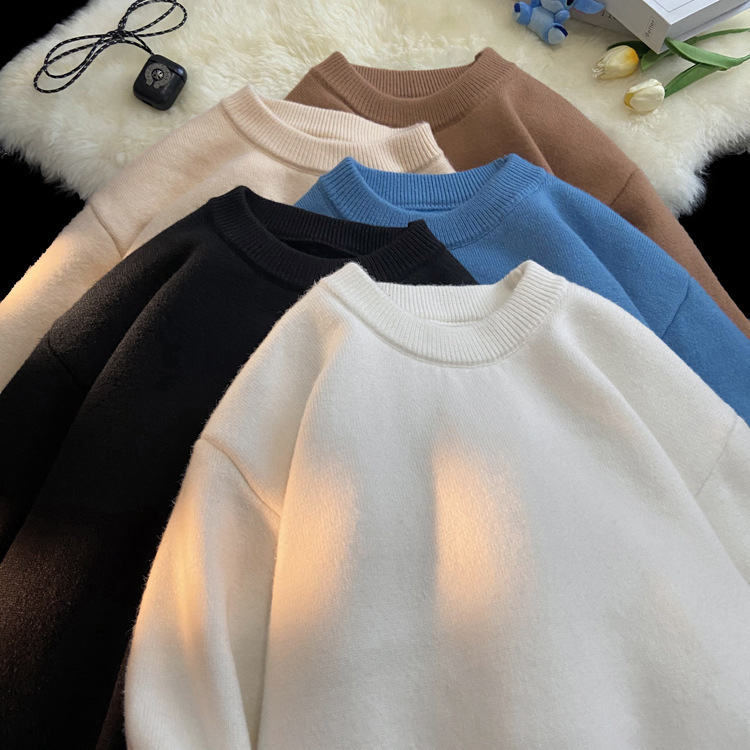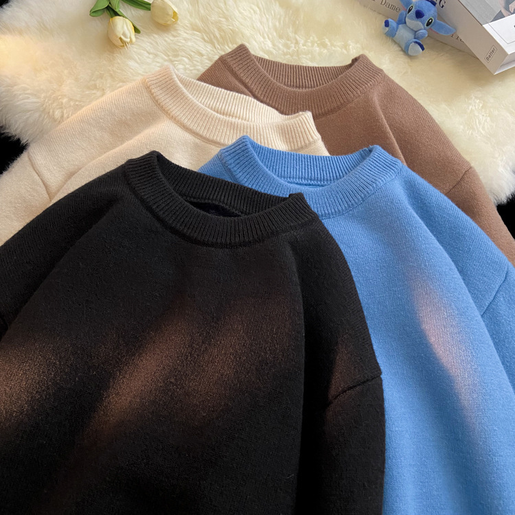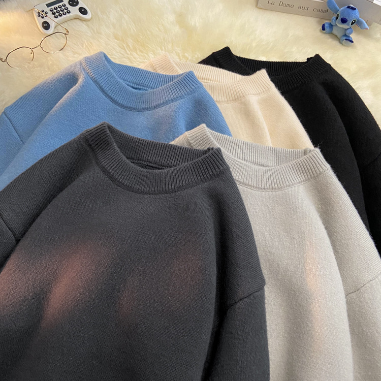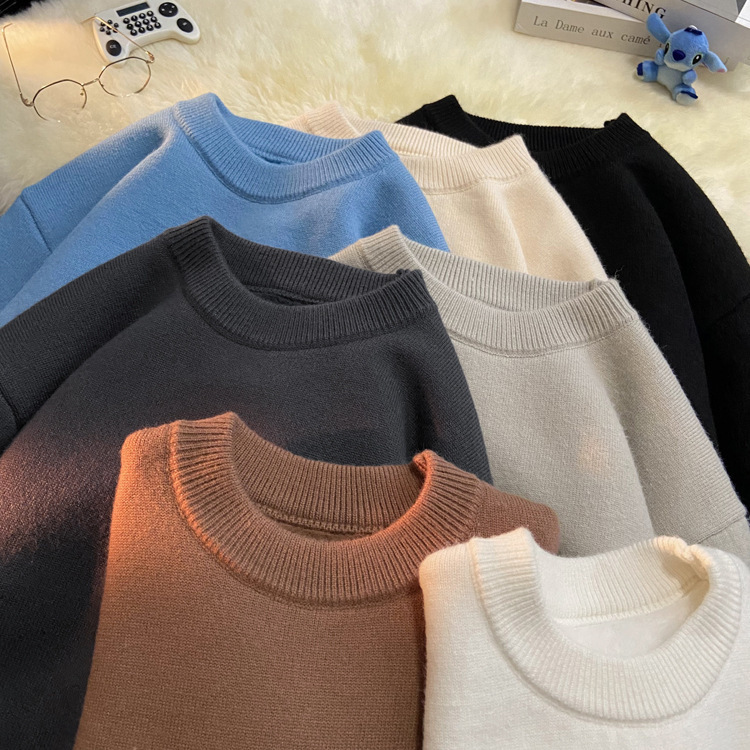 고급 회색 스웨터 남자의 봄 가을과 겨울 기모 두꺼운 미국 스타일 레트로 느슨한 게으른 스타일 둥근 목베이스 니트 스웨터스토어 가기