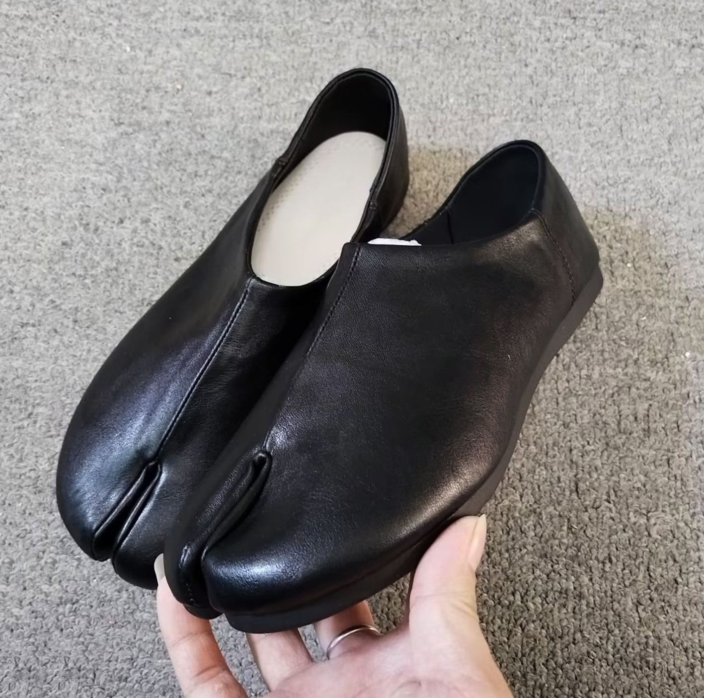 유럽과 미국의 틈새 하이 엔드 소프트 가죽 편안한 슬립 온 발가락 신발 게으른 싱글 레이어 신발 여성용 양방향 슬립 온 힐 플랫 로퍼