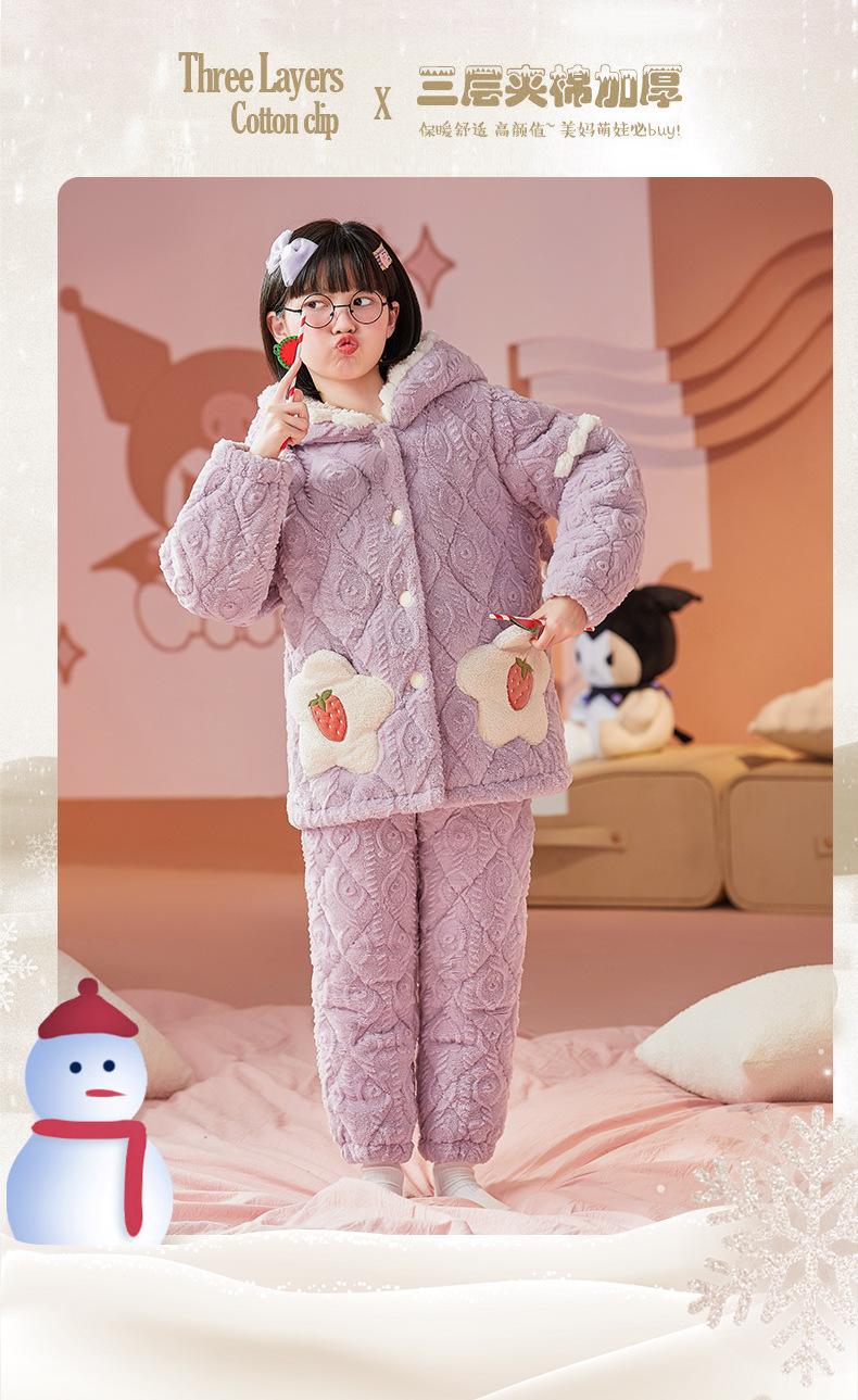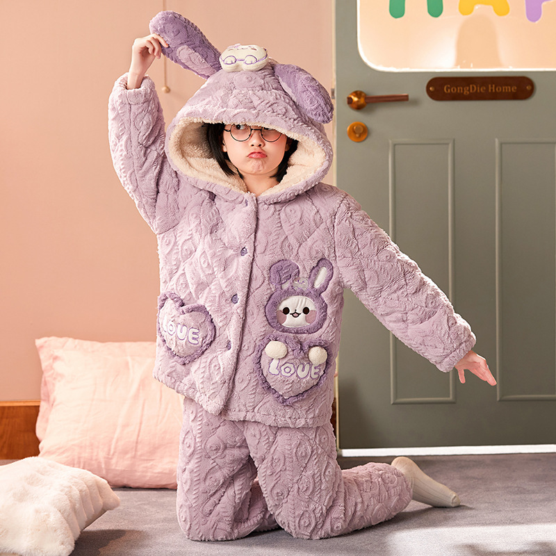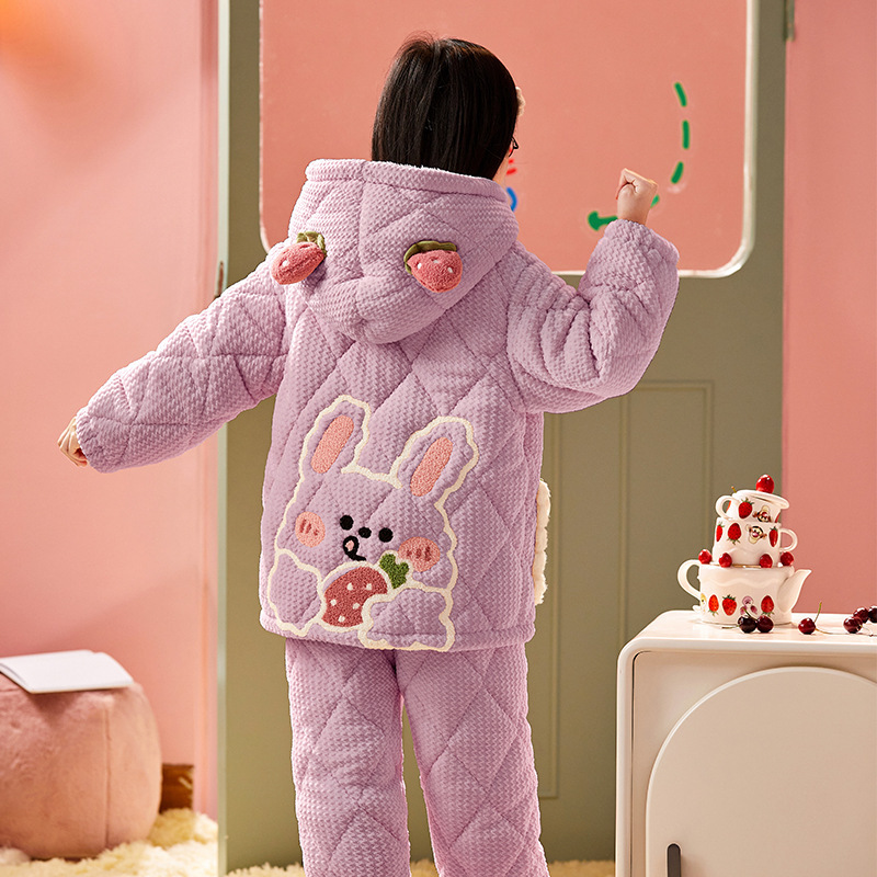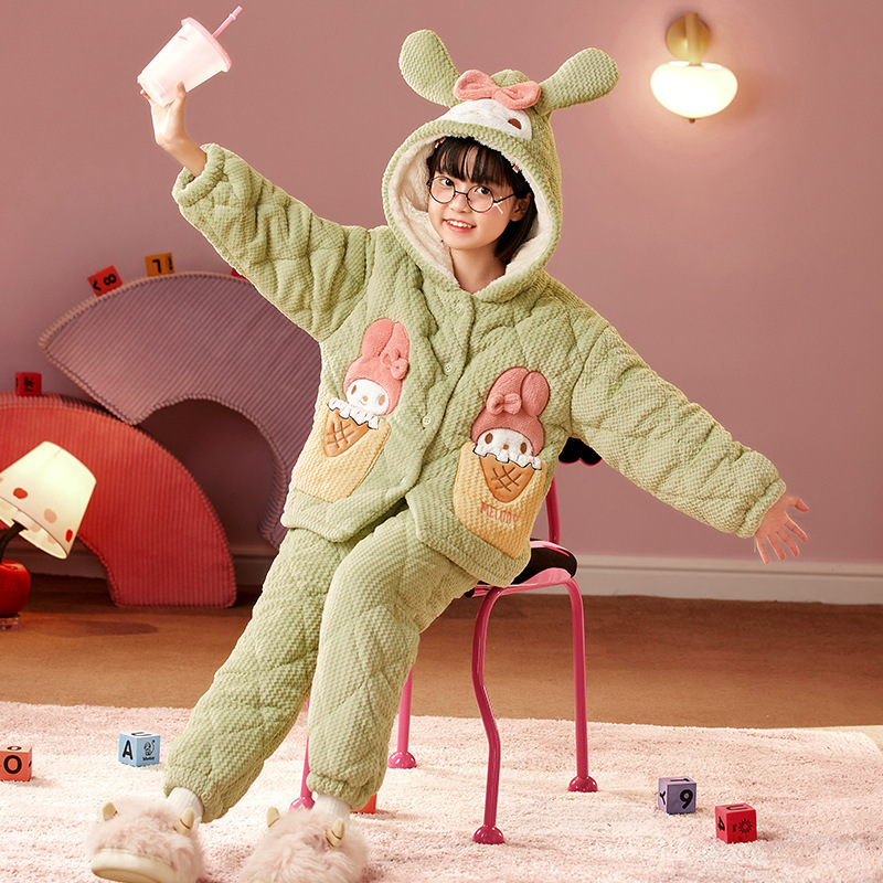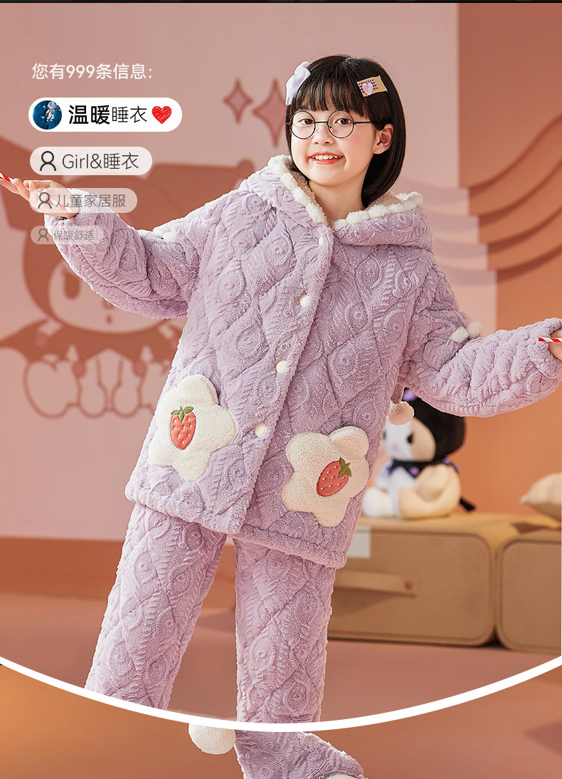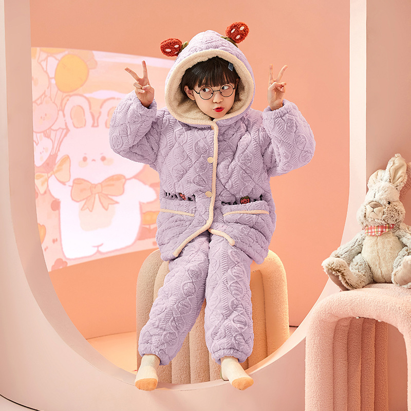 어린이 면 잠옷 소녀 겨울 3 층 두꺼운 중대형 어린이 만화 달콤한 소녀 후드 홈 옷 부모-아이스토어 가기