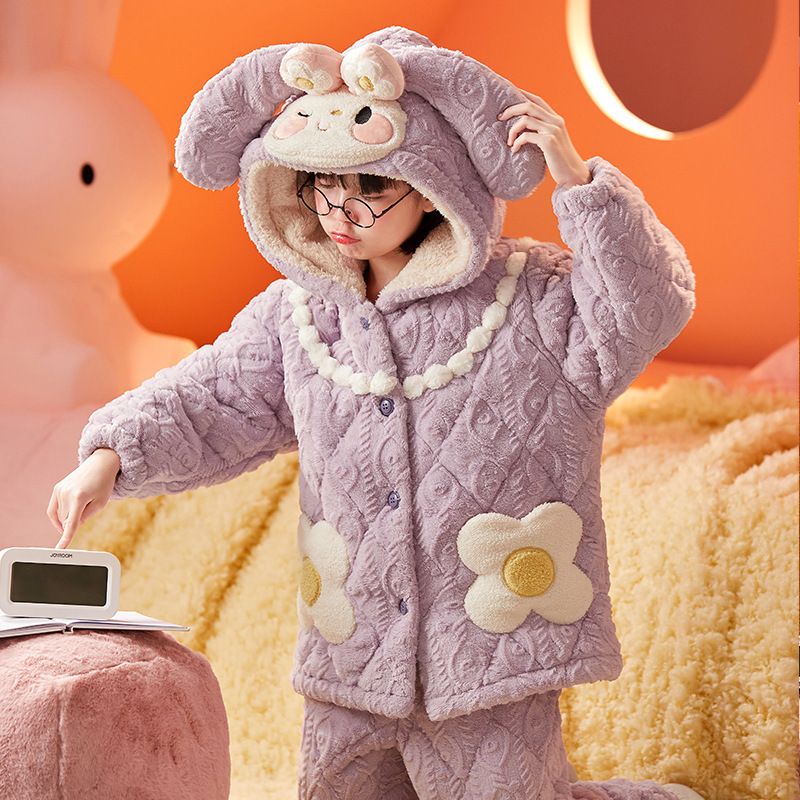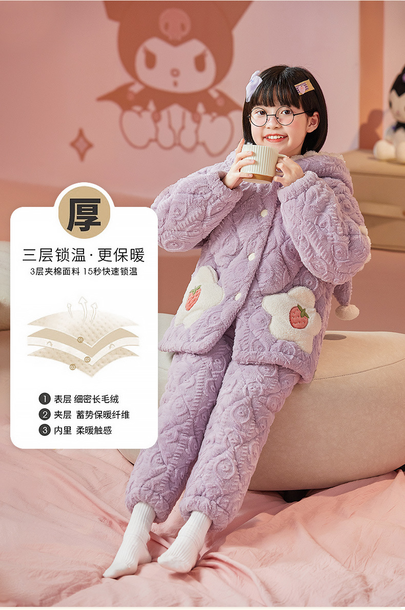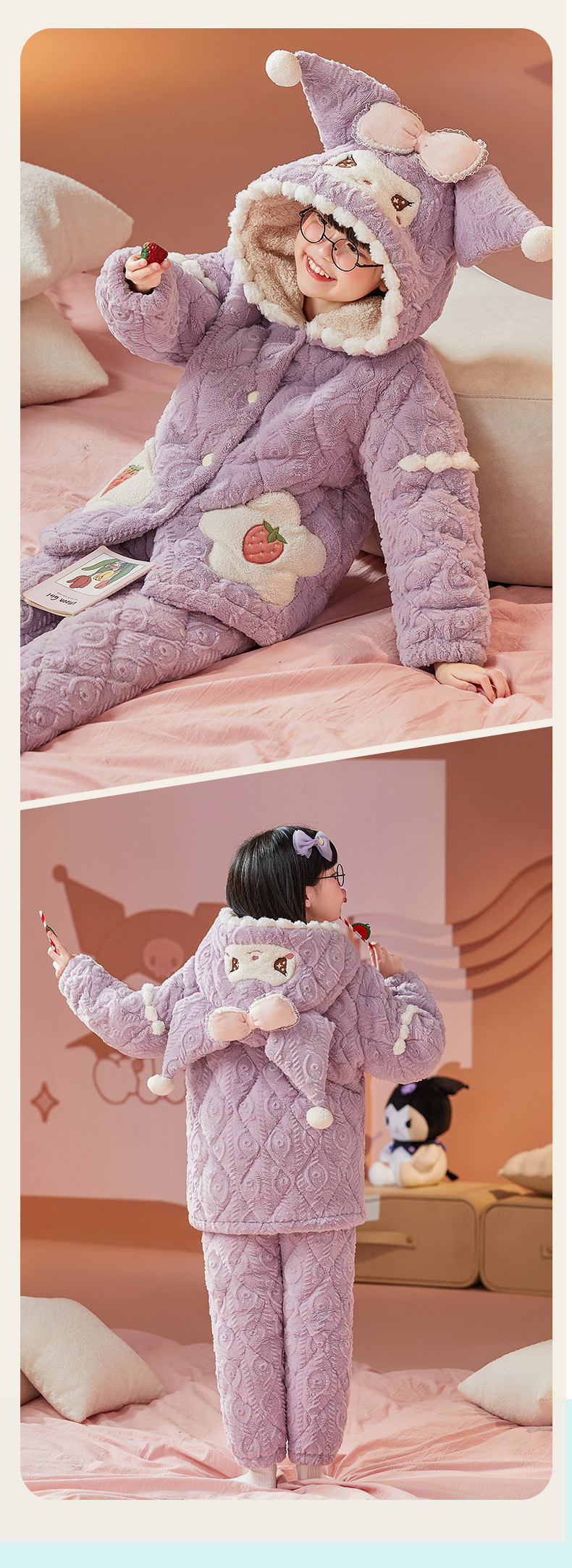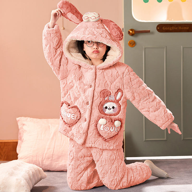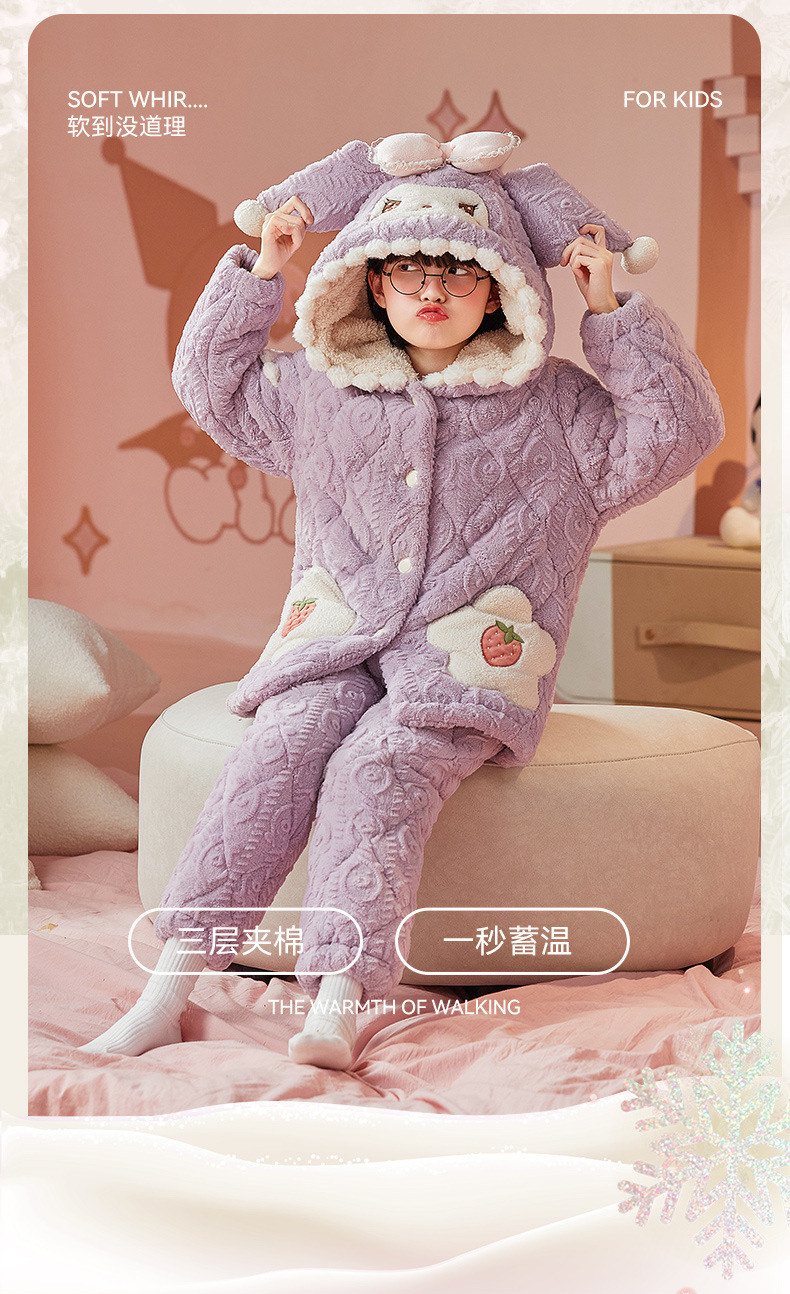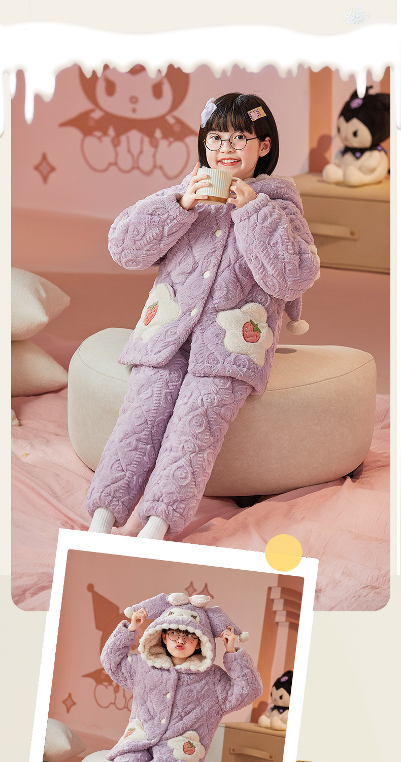 어린이 면 잠옷 소녀 겨울 3 층 두꺼운 중대형 어린이 만화 달콤한 소녀 후드 홈 옷 부모-아이스토어 가기