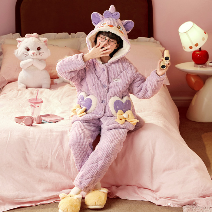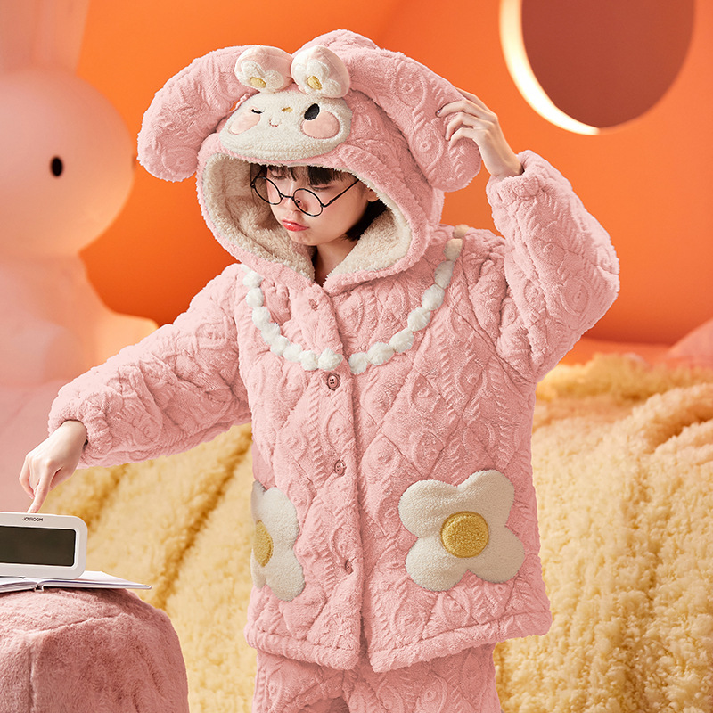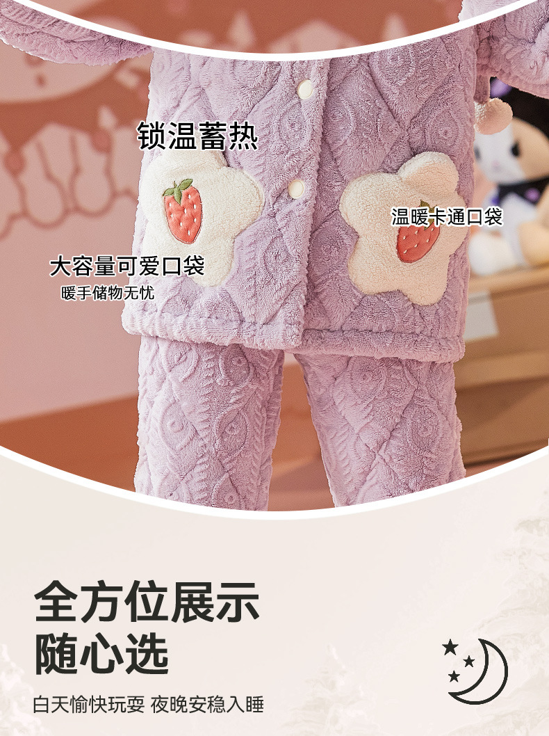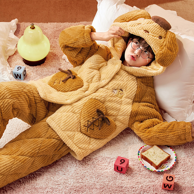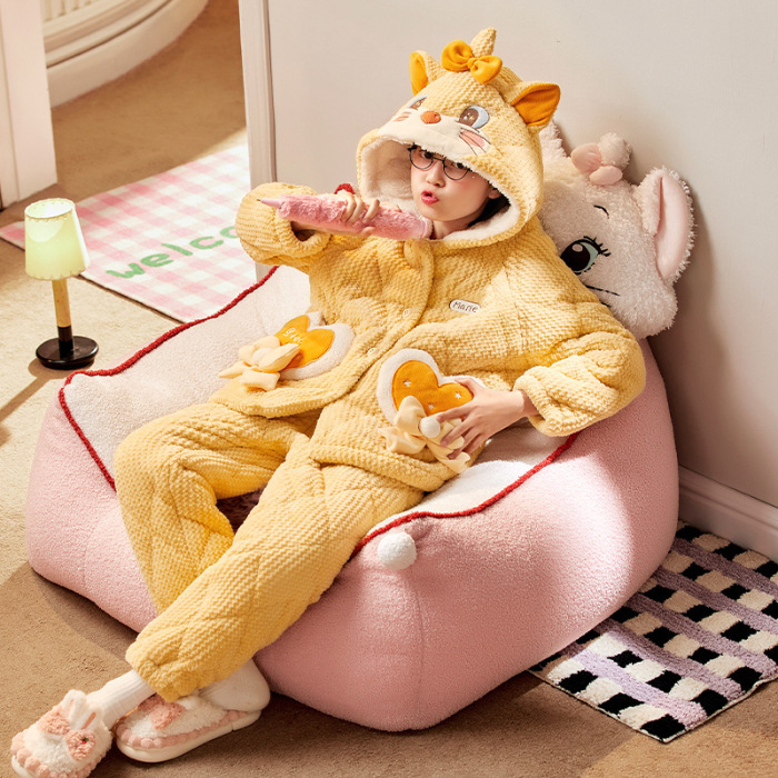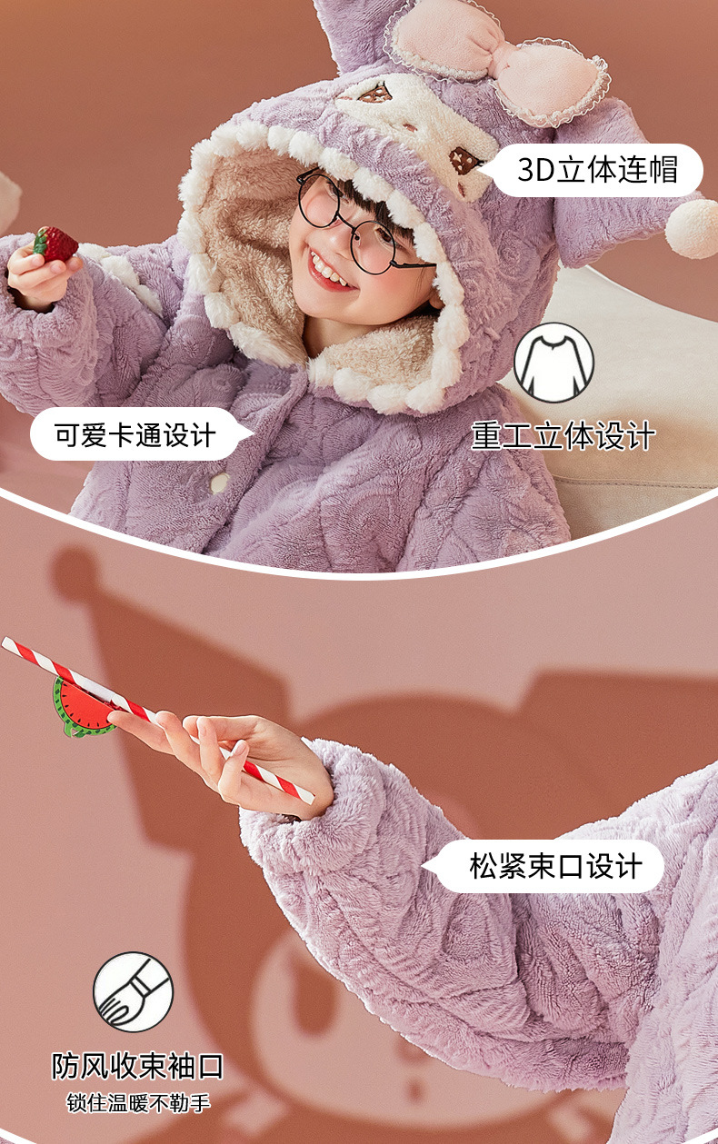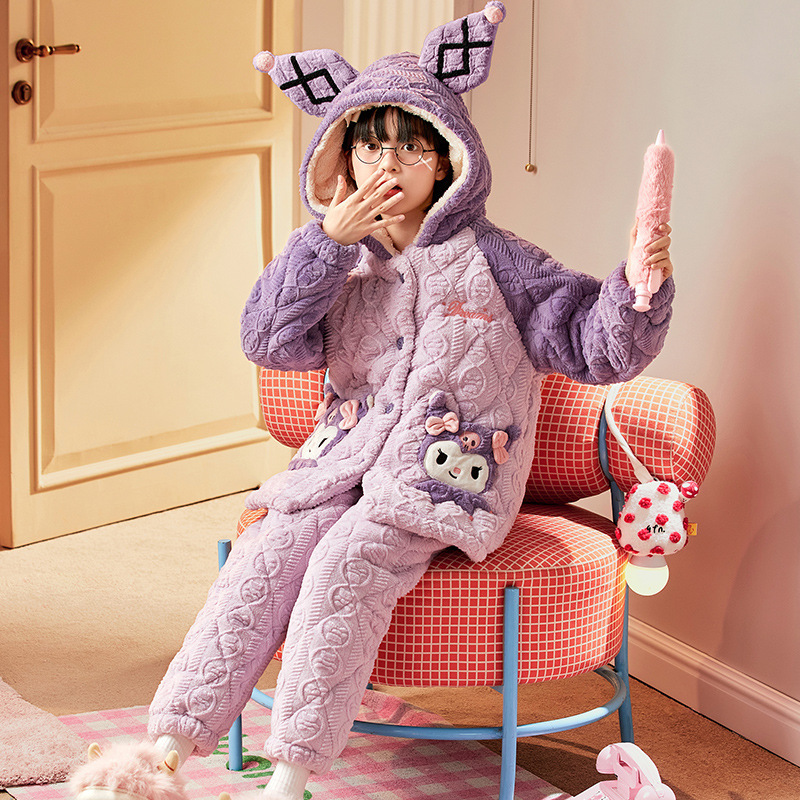 어린이 면 잠옷 소녀 겨울 3 층 두꺼운 중대형 어린이 만화 달콤한 소녀 후드 홈 옷 부모-아이스토어 가기