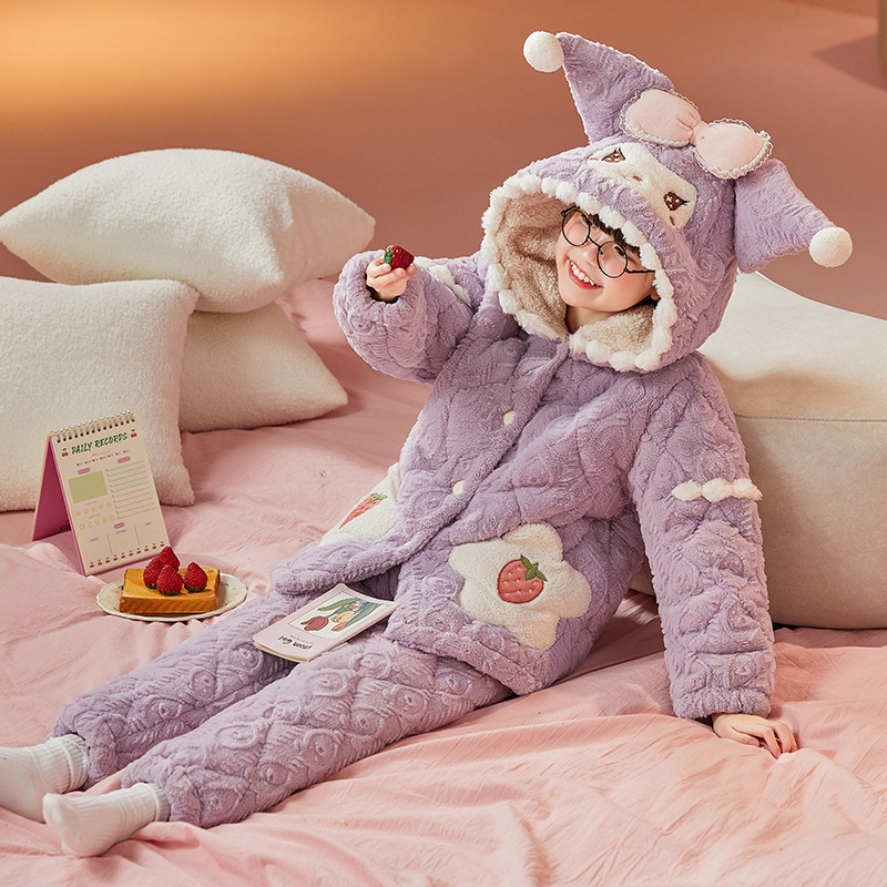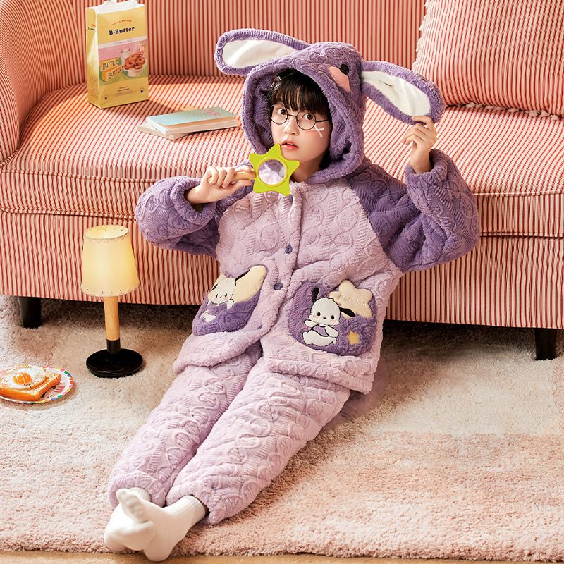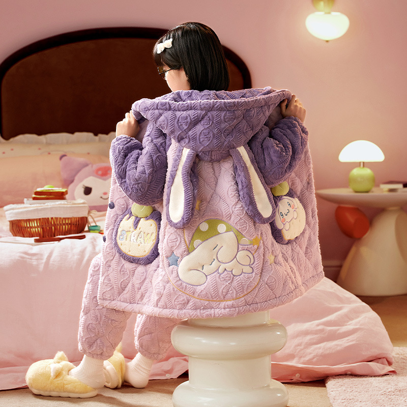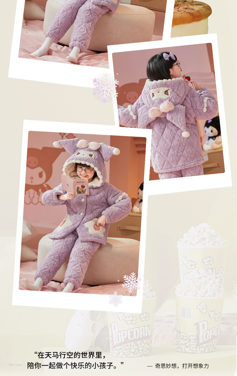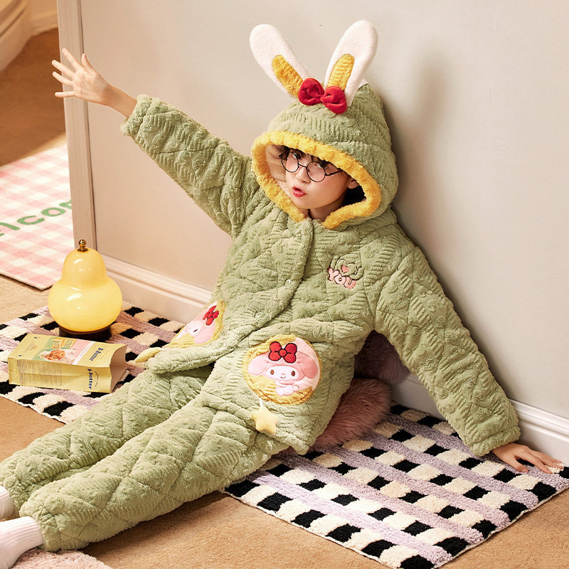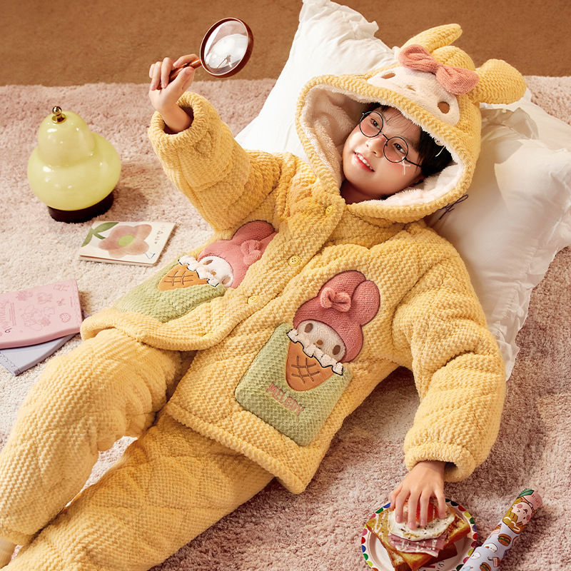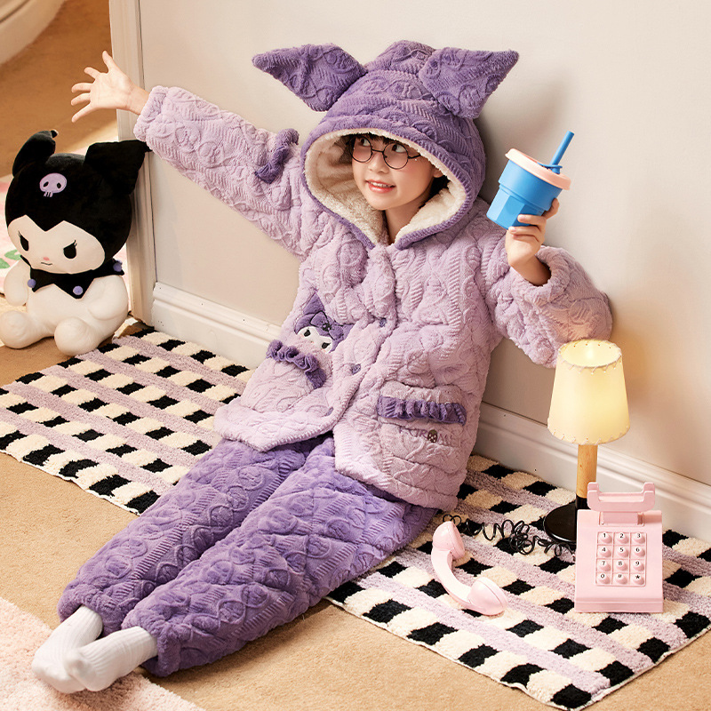 어린이 면 잠옷 소녀 겨울 3 층 두꺼운 중대형 어린이 만화 달콤한 소녀 후드 홈 옷 부모-아이